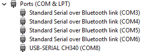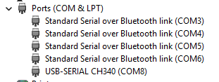 In Posting #8, I see a LOT of BT ports. With this window open in Device Manager, try deleting all the COM ports listed. Then unplug the laser and reboot windows. Let Windows rebuild them as needed when you power back up. Reopen the Device manager and then connect the laser. You should see only the CH340 entry. Screen shot it and post in a reply.