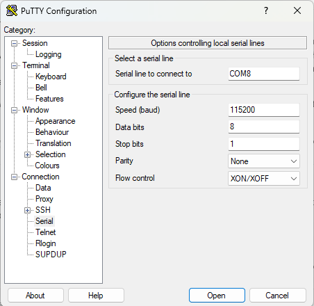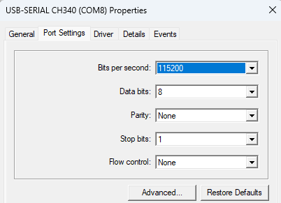 That last line is the one we are interested in, and it is the only USB-SERIAL. It also shows the CH340 driver is installed.