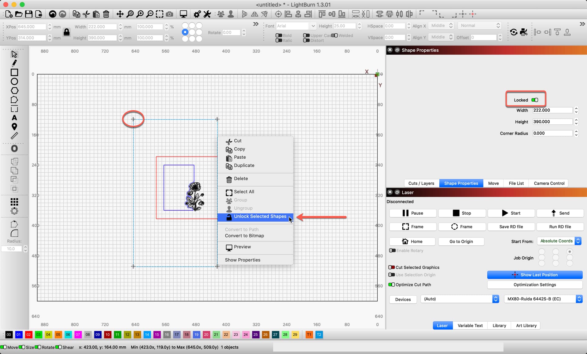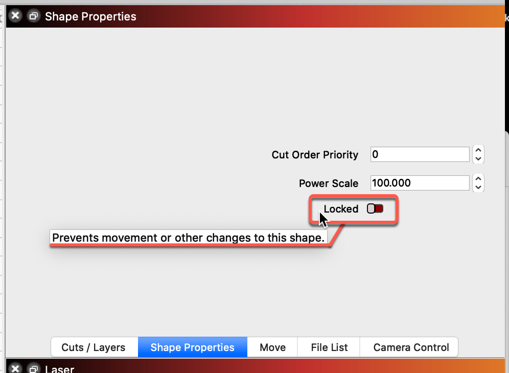 This was on an old version of Lightburn. I have discussed locking shapes in several videos since.