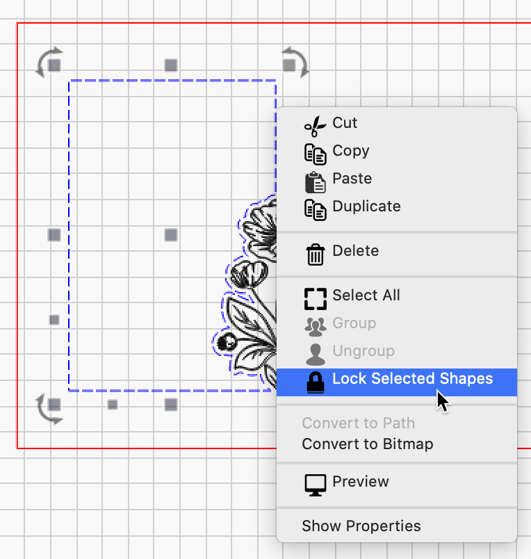 If you ‘Lock’ the selection, you are no longer going to pick the locked shape and move it or change it by mistake. It is locked, so you can not take action on that shape(s) until they are unlocked and made ready for editing again.