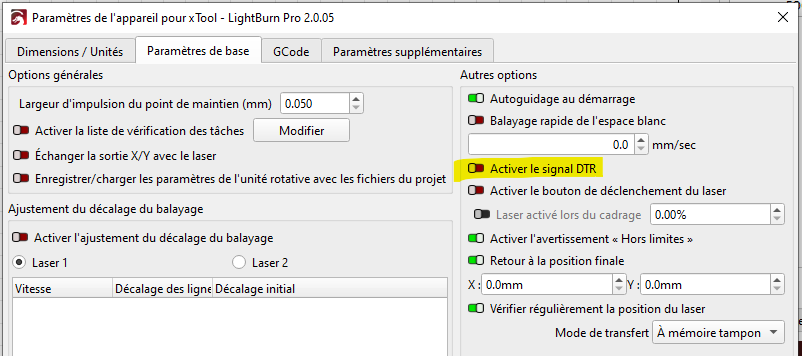 - Restarting both the laser and LightBurn.