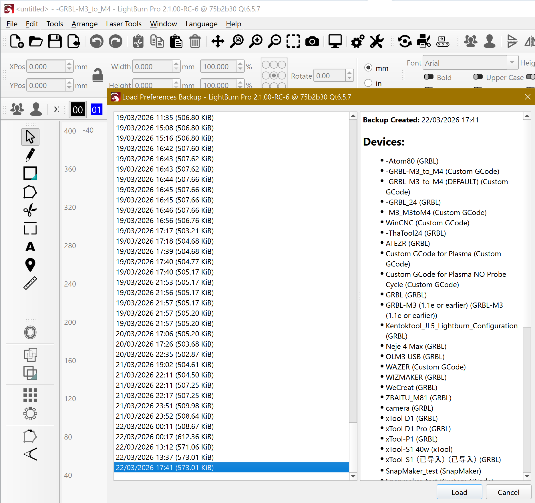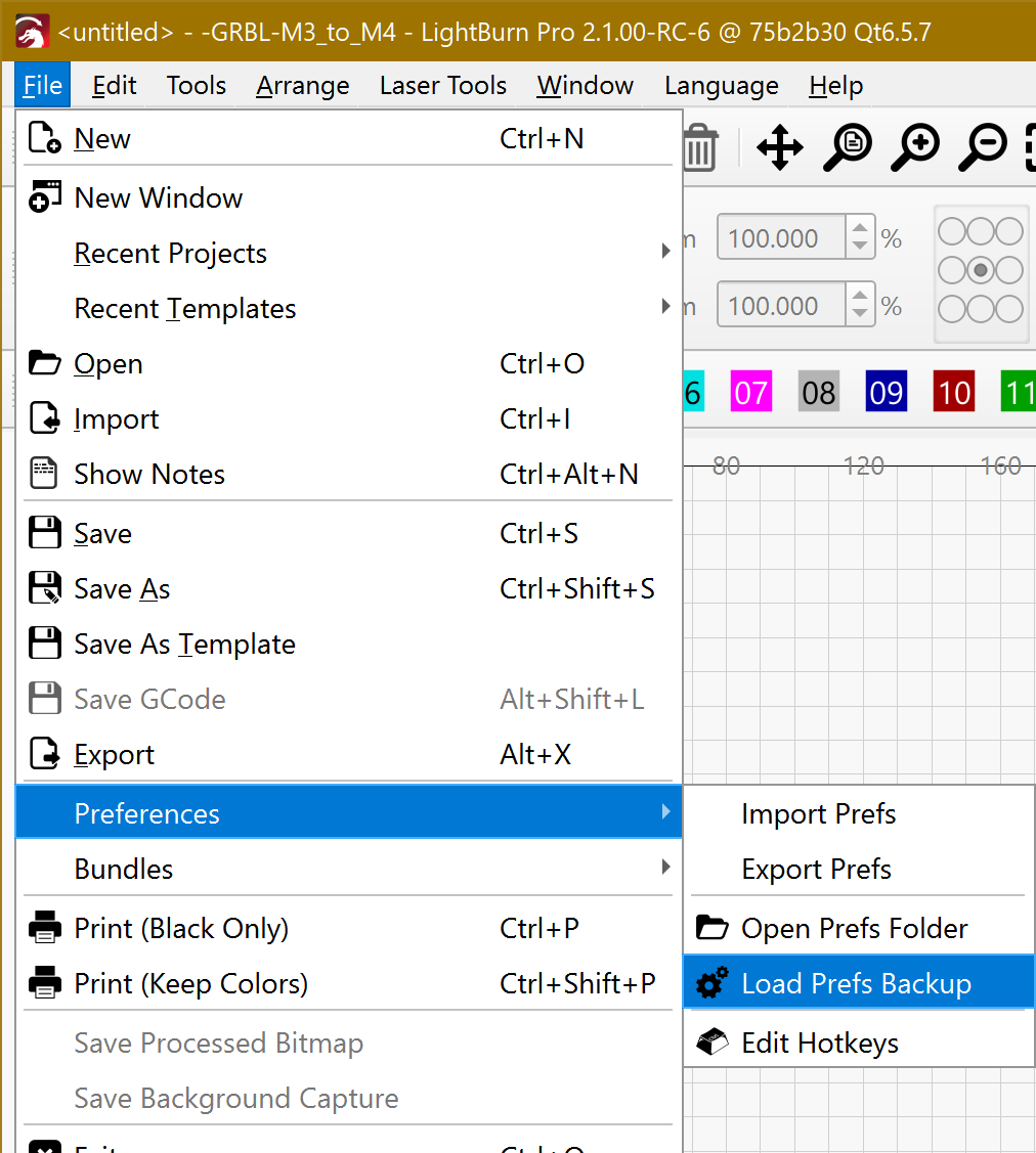 I know that Lightburn has restore points, I found out last year by accident. Now that I am looking for it I cant seem to find it or go about getting to it. I have a Sihao 100 watt co2 that started acting strange lately. When nothing is connected to it, it works fine, as soon as I hook up a usb line it starts dragging and wont do much of anythhing. I know that windows had a update and it might be that but it seems to me that some setting must have changed, hence, looking of the lightburn restore point.