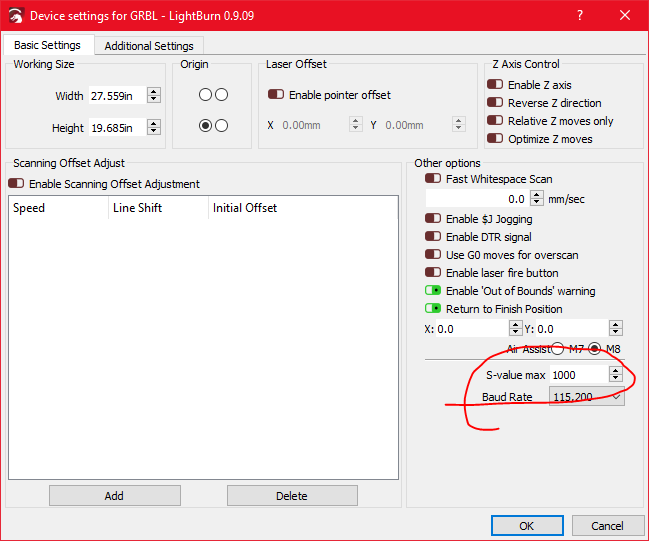 Nothing weird there I don’t think. Could be controller settings. Can you type $$ in the console in Lightburn, hit enter, and paste the output here?