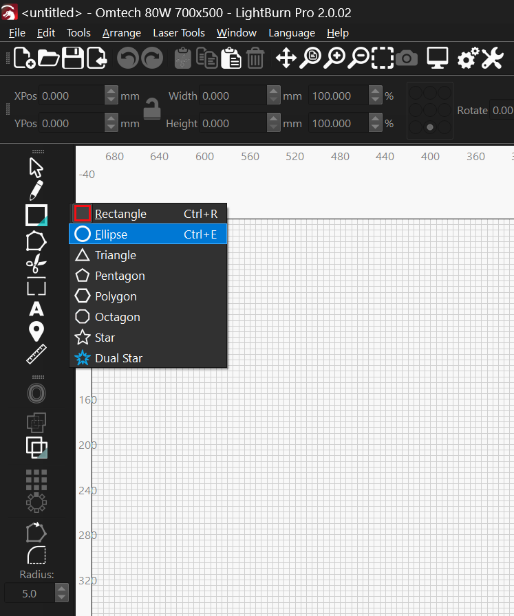 Are you referring to the ellipse tool? If so, push the blue triangle on the rectangle tool which will pop-out another window which allows you to select the ellipse. Alternatively, click-hold the rectangle to get the same option.