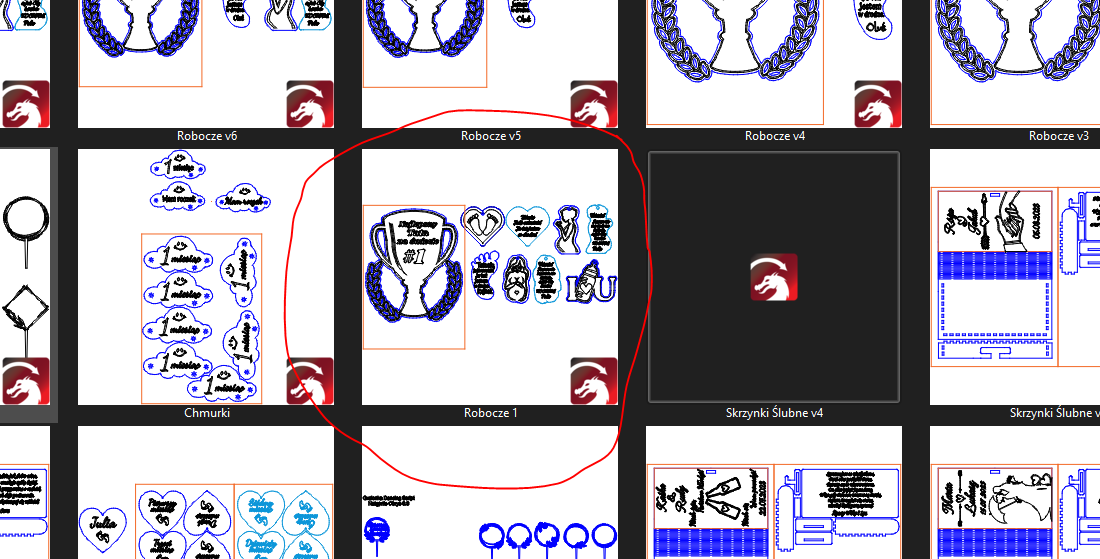 The Robocze 1.lbrn2 file has some content, but corrupted in some spots, producing the message “(line 174?)”. The contents of the Skrzynki Ślubne v4.lbrn2 file does not look to be a LightBurn file. Please tell us as much as you can about this file. How was it generated, what is in it (vector art, raster/bitmap images, both)?