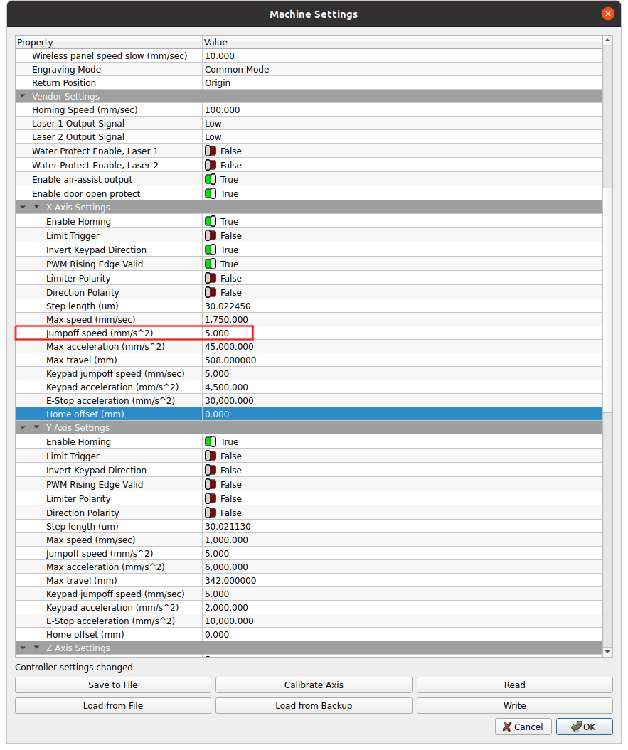 Sorry for the late reply. I set mine both to 5.0 as well and it worked line a charm. I canāt thank you enough. The sample part came out better than i had ever hoped for. I am curious, how is it that you know so much about the machine setup? Do you work for a laser equipment manufacturer or service organization? It is a pretty obscure setting and you knew right where to go to fix it. I would have been lost without your suggestion. Thank you again.