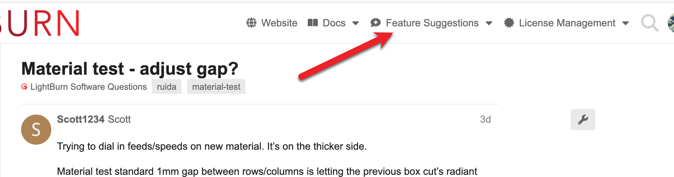 Material test standard 1mm gap between rows/columns is letting the previous box cut’s radiant heat interfere with the subsequent cut. We need an ability to adjust the gap.