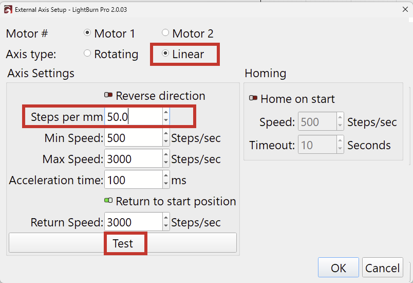 Perhaps we chose the wrong working mode in Lightburn, or maybe there is a way to increase these values?
