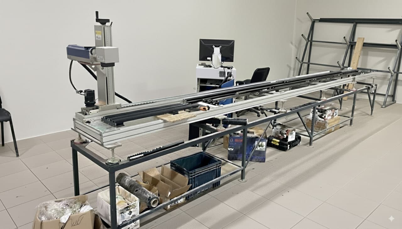 We mark full length rulers up to 4.5 meters long. In our case, a linear actuator with a length of 4.5 meters is used. It works fine with EZCad in operation mode, but as everyone knows, this software is awful: it freezes during the marking process and hangs on large projects.