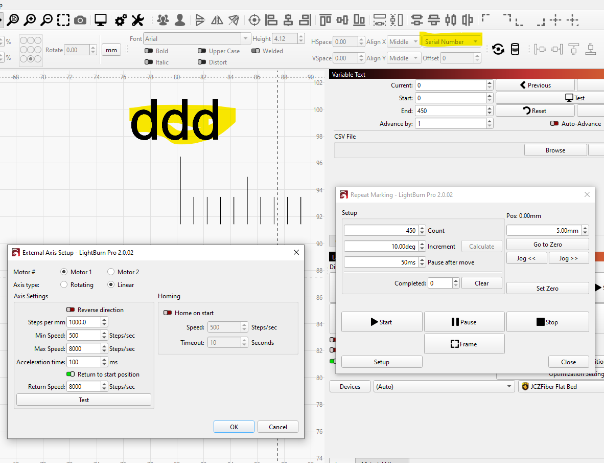 Ezcad settings: