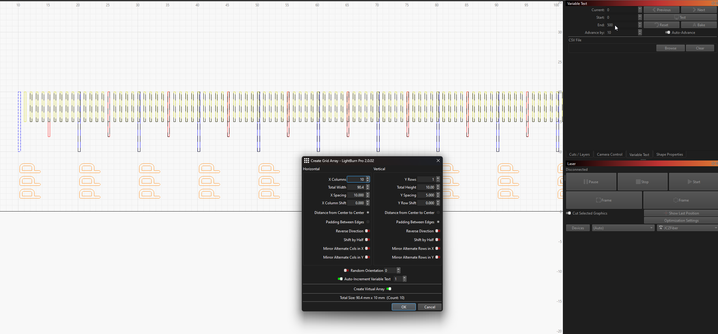 To control the laser movement, we used the SplitMark2 plugin in EZCad.
