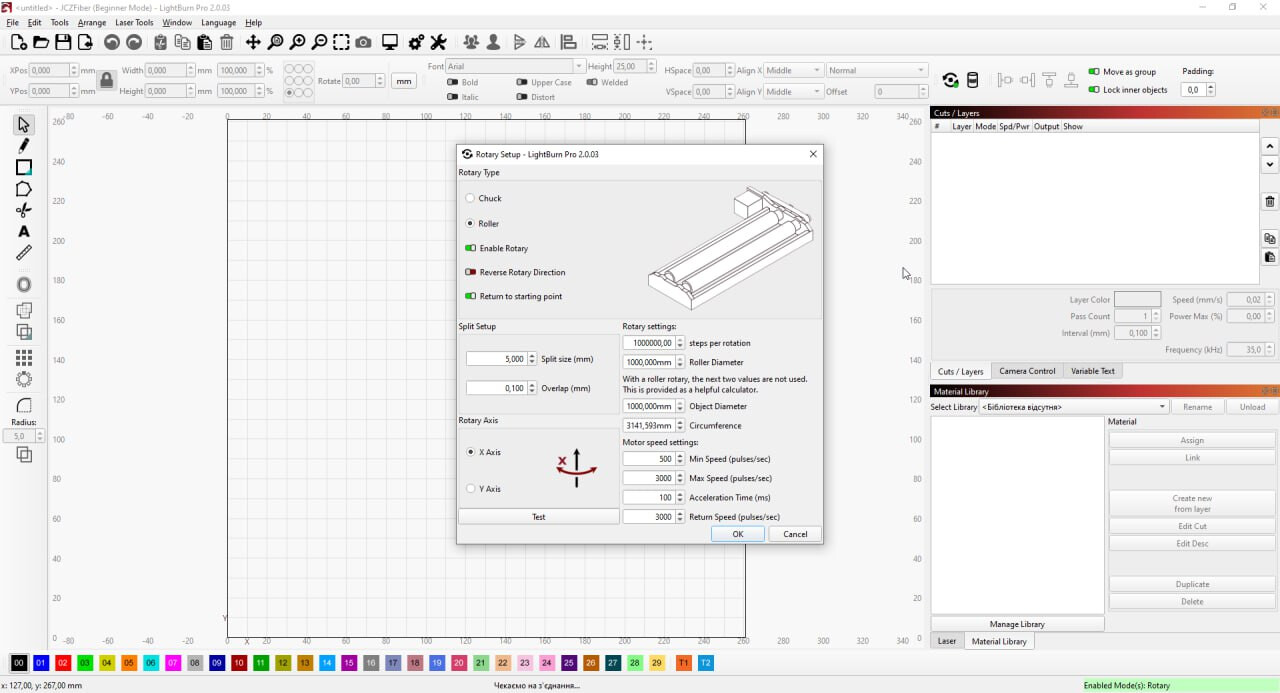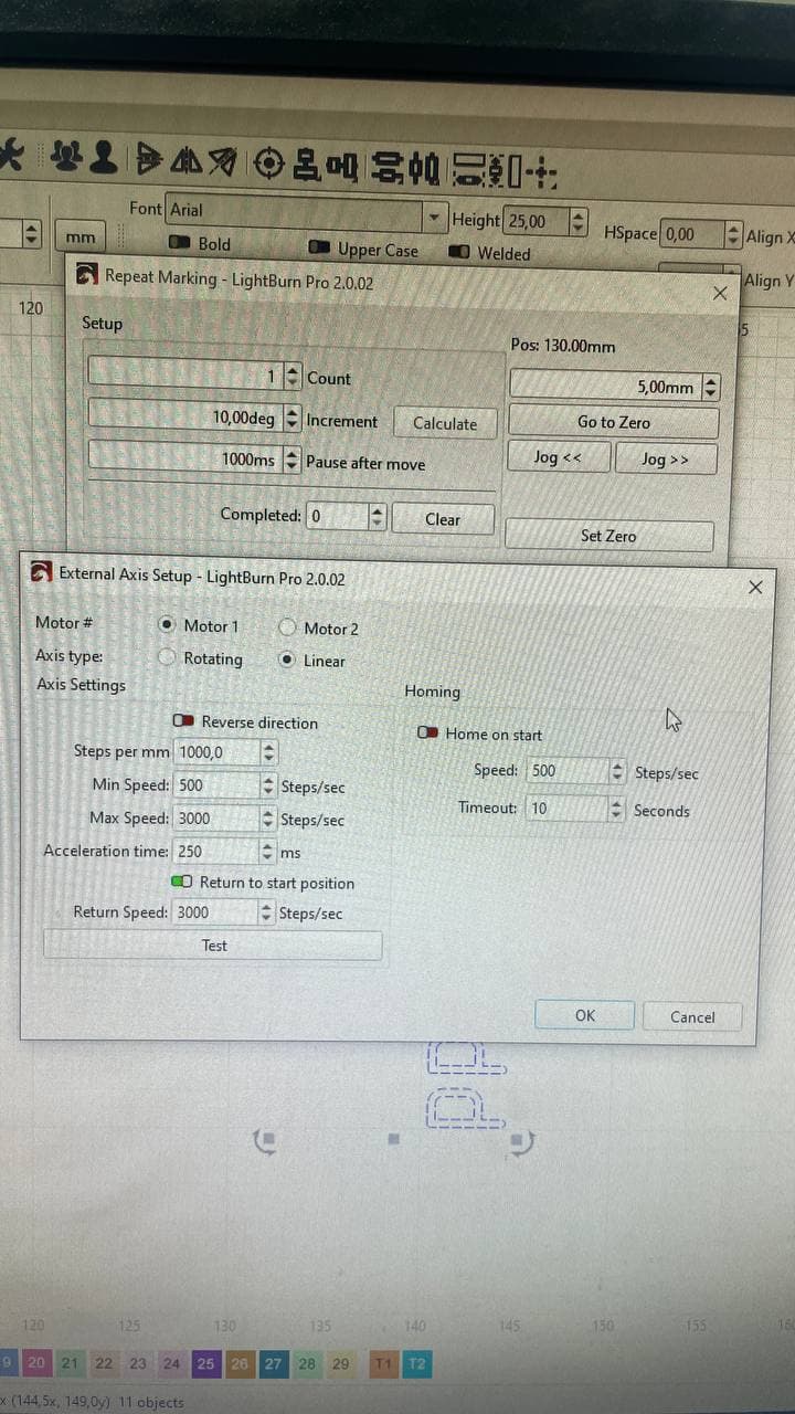 We tried using the Rotary (Roller/Chuck) movement mode for control, but we ran into a problem — we hit the limits of the maximum parameter values.