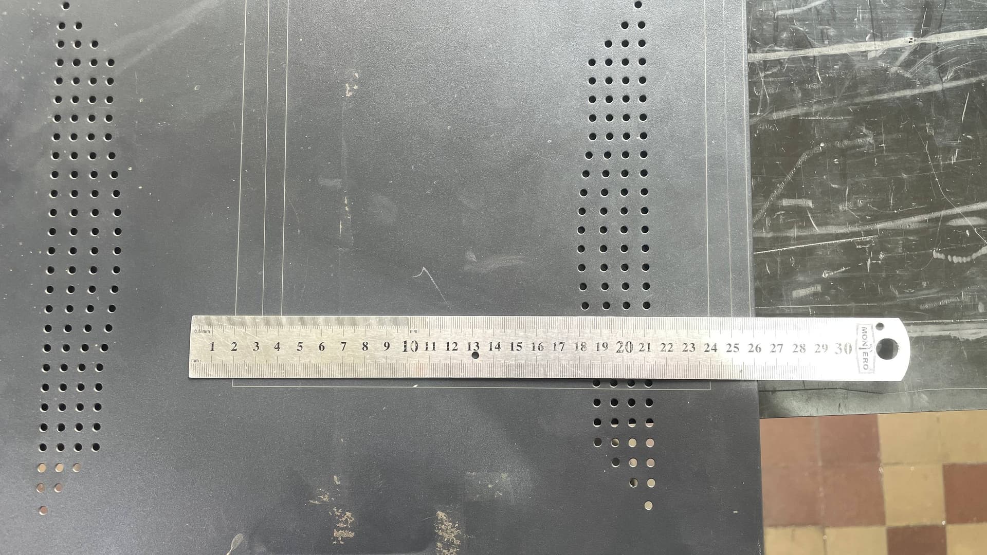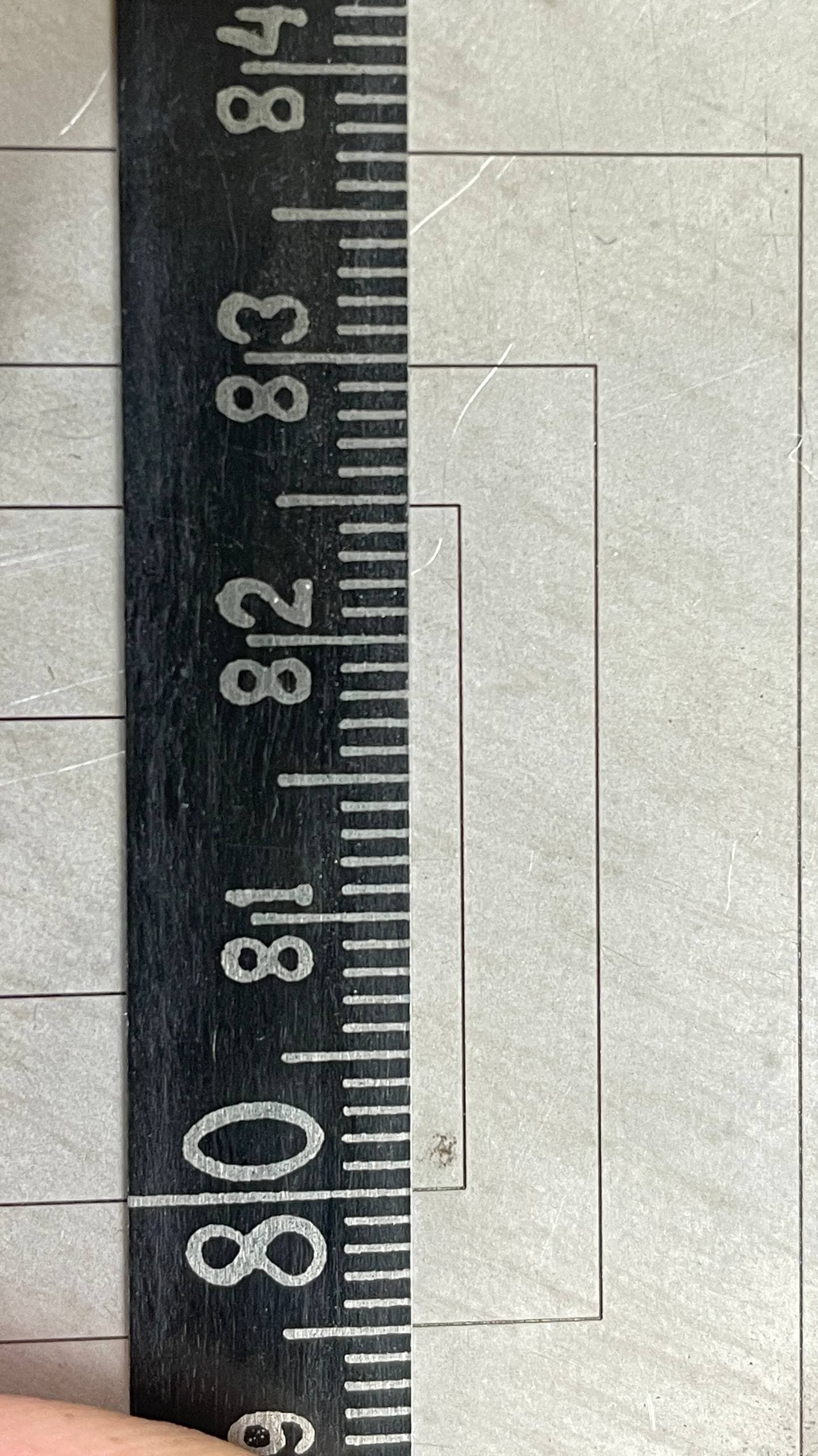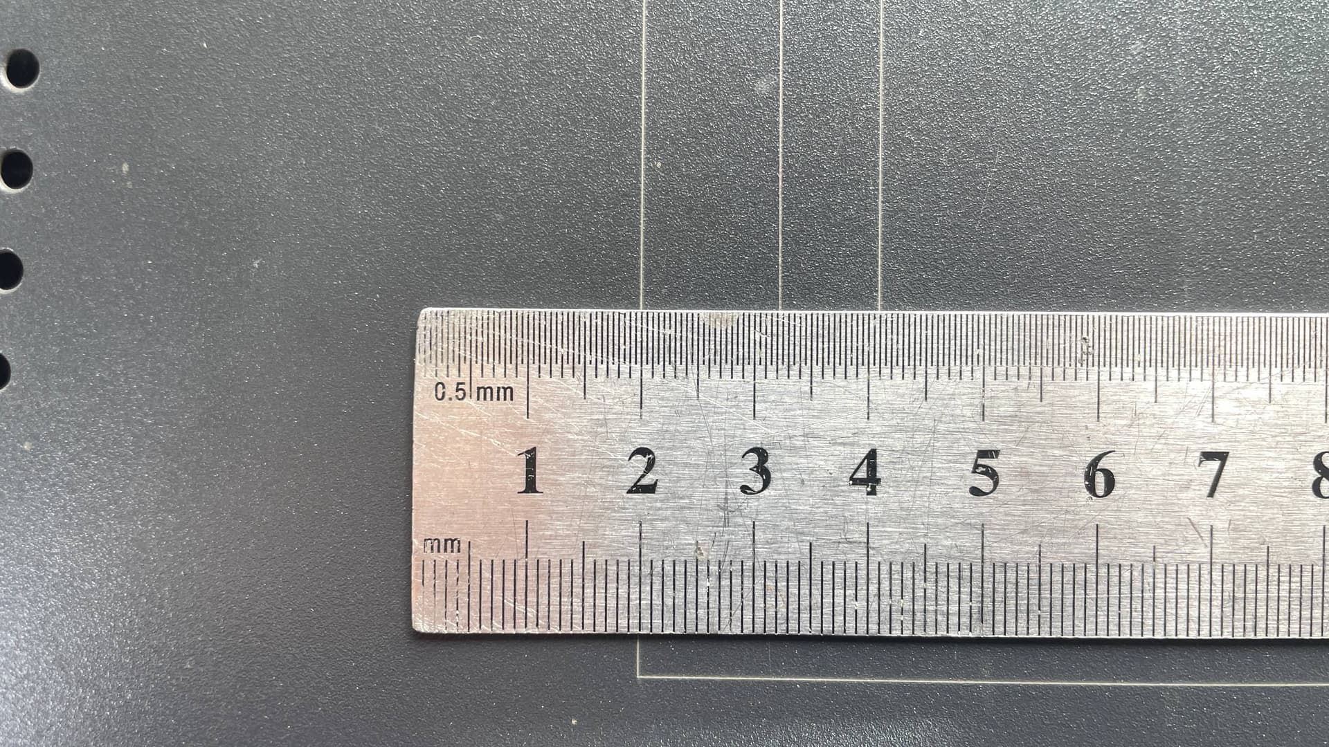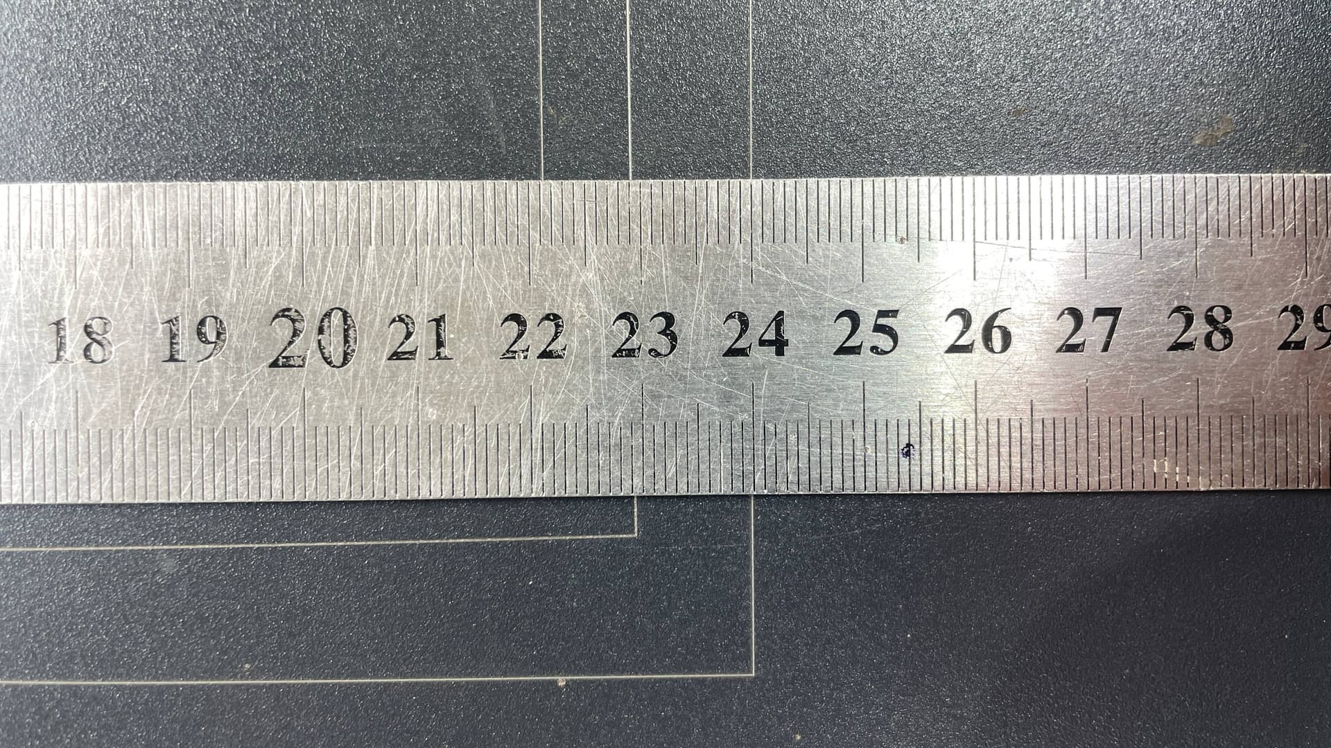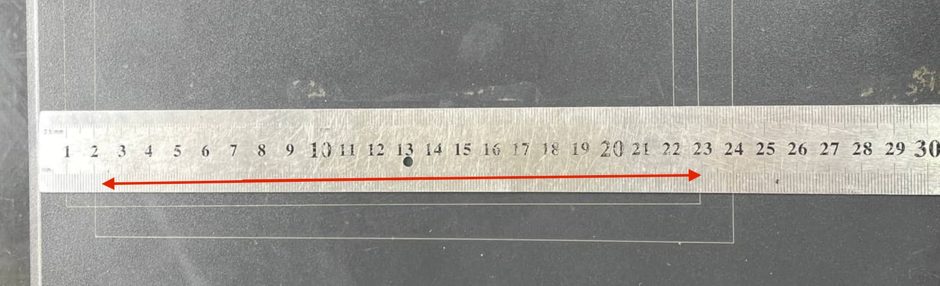 The ruler here is centered, so there’s a small 1 mm difference across this working area (22 cm).