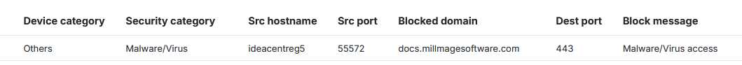 I’m using the Zenarmor next-generation firewall on my network. It seems to block the MillMage domain by default: