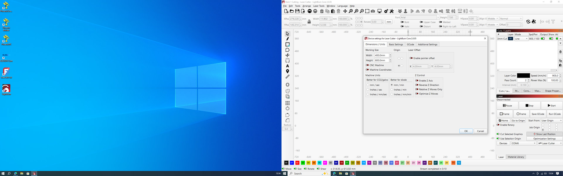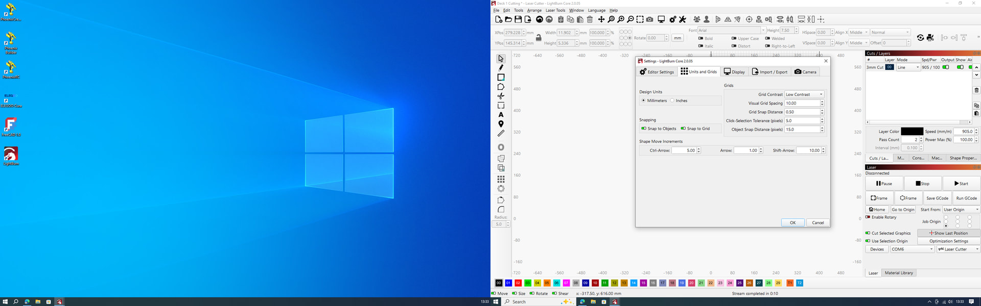 So I have reworked the wiring and fitted the switches to the left carried out your work task,s and it has never worked better. Origin of my drawing and the laser, plus the text is spot on.