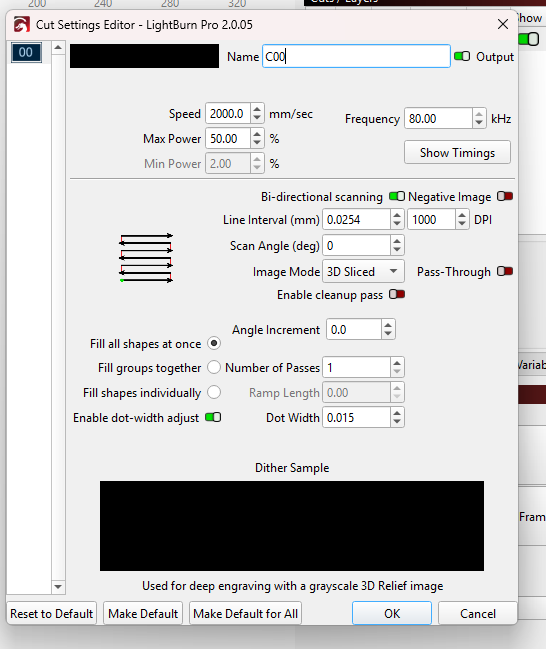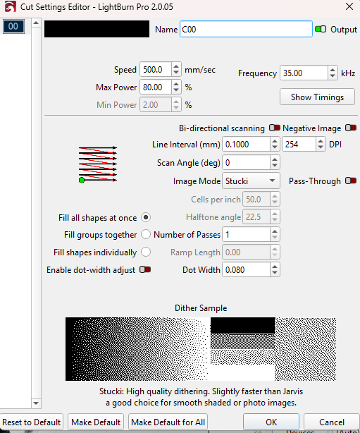 I will look when I get back I am coming from a diode laser some some of the setting a new to me