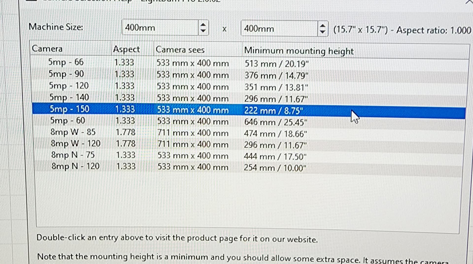 So my workspace is 400mm x 400mm. Lightburn shows the camera highlighted at a minimum of 8.75 inches. You don’t think that would work?