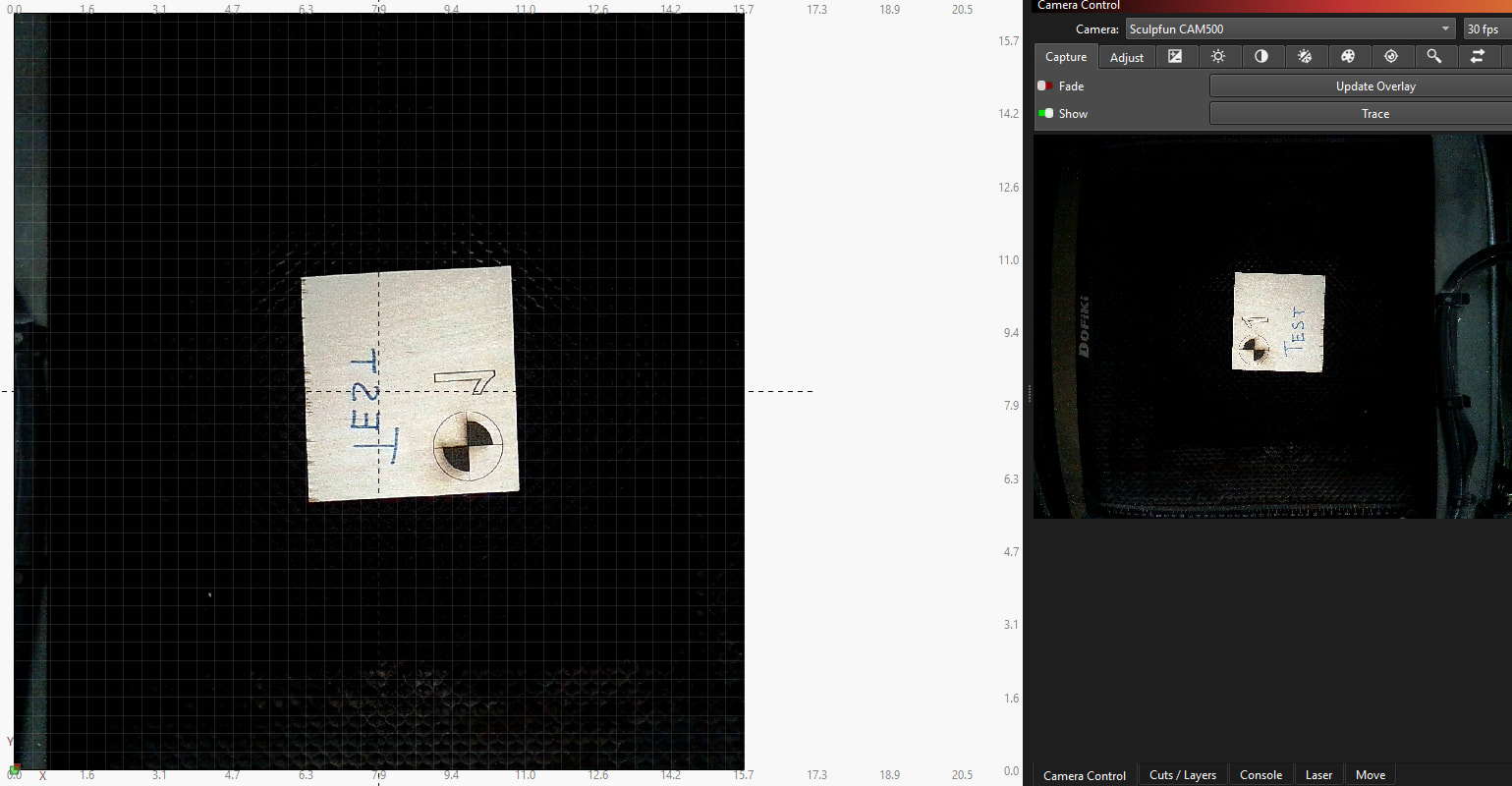 Camera has always been mounted to the right side of my laser frame (important for later). Not able to mount it to the back because of the hood I use. Began to notice a slight drift in what was appearing in my camera versus what was being produced. A few small x/y shift adjustments and things improved slightly. When taking a piece out, I very slightly nudged the portion of the camera that extends out over the frame and found that it was noticeably loose. After tightening it again, I decided to re-calibrate to be sure everything was good…it was not. Something has happened that now calibration is extremely difficult and I’m getting very inconsistent results during the lens calibration portion of the process. Alignment seemed to do ok, BUT now when going through the last steps (camera tutorial has you write a letter on a piece of scrap and use the trace feature to make small x/y shift adjustments), the picture is inverted in multiple places.