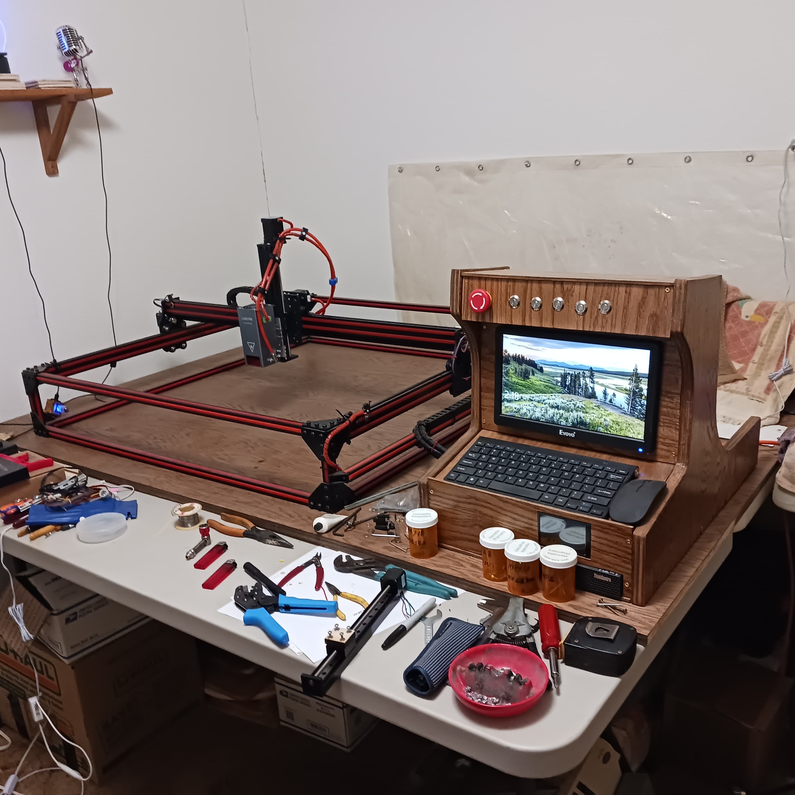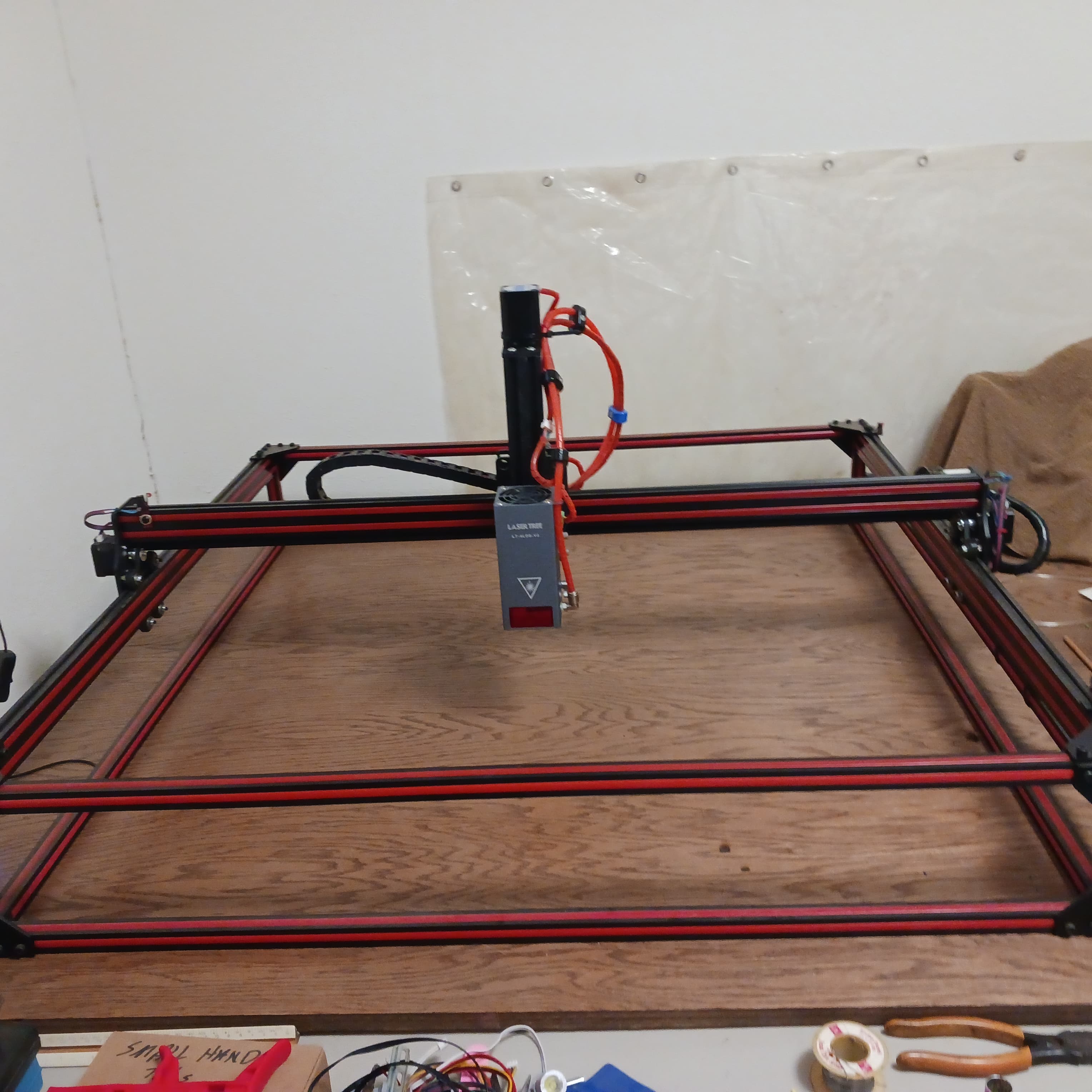 My little Cherokee wife is not made. That wood is a 4’ x6’ x3/4" stained red oak that the laser rig and the console is bolted down to. One of these days I know that I’ll have to move it so I’ll be bolting carrying handles on to it. Takes two people to move it.