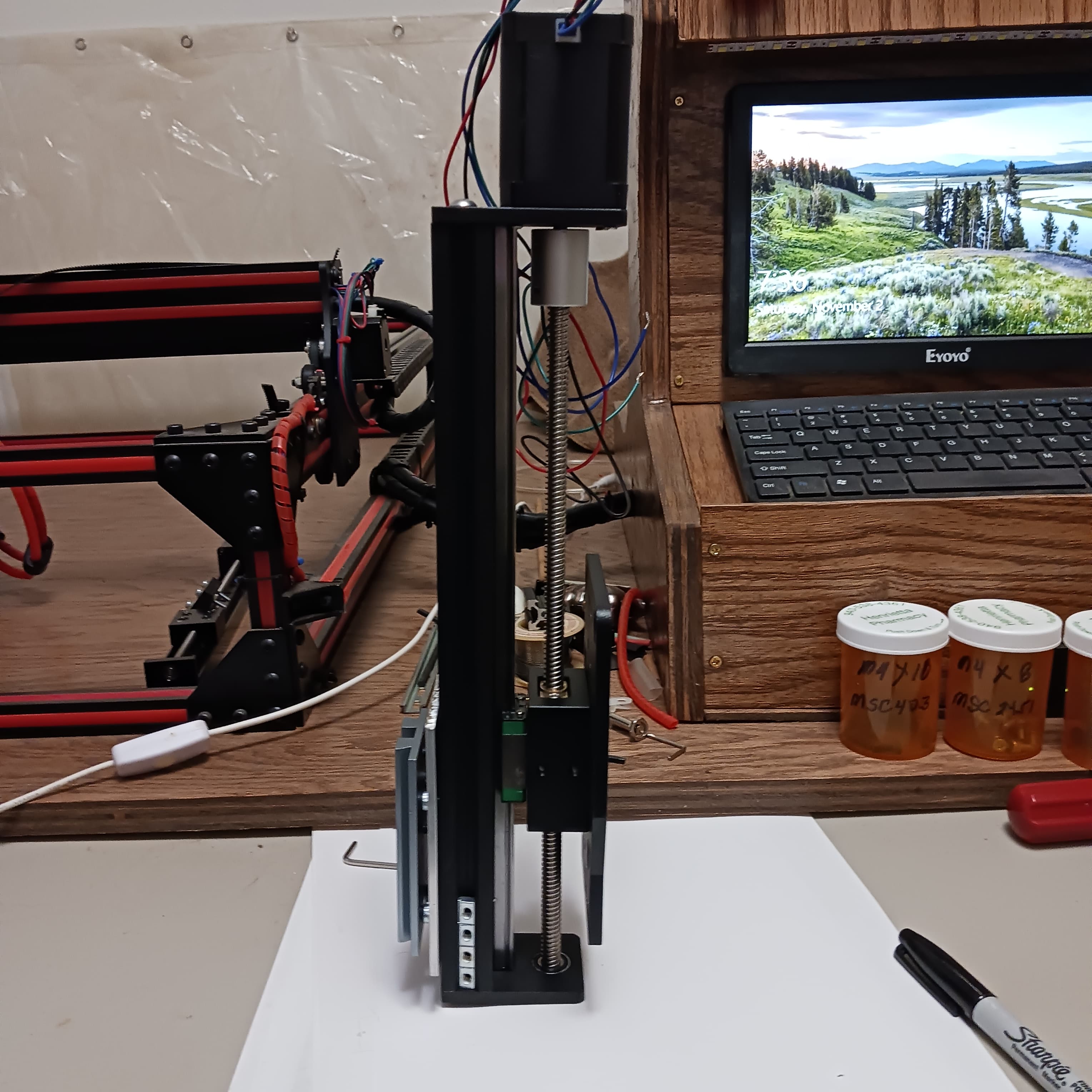 Well here it is. I need to put on one more piece of red wire wrap. I also need to tighten the belts a little bit. The X travel is to tight right now. I either need to loosen the belt a little or I have back off the tightness of the carriage roller wheels just a little.