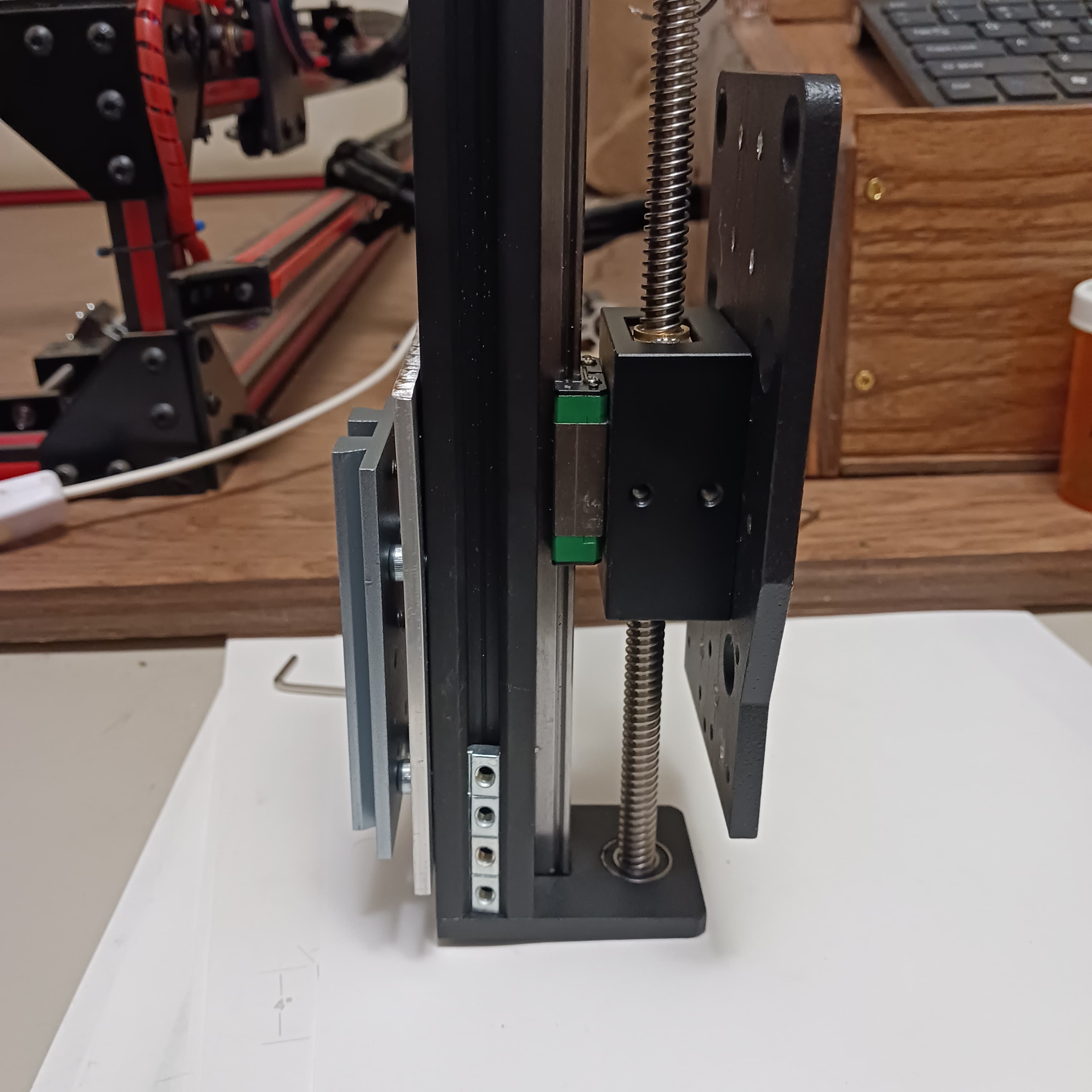 #3 is looking at how I mounted the actuator block to the front carriage plate. By mounting the the block to the carriage plate, the entire actuator will move up and down. With the laser plate mounted to the actuator itself, the back side. Doing it this way my laser can move up/down for the full 200 MMs. This way I just raise the laser all the way up, throw the glass tumbler under it and start etching.