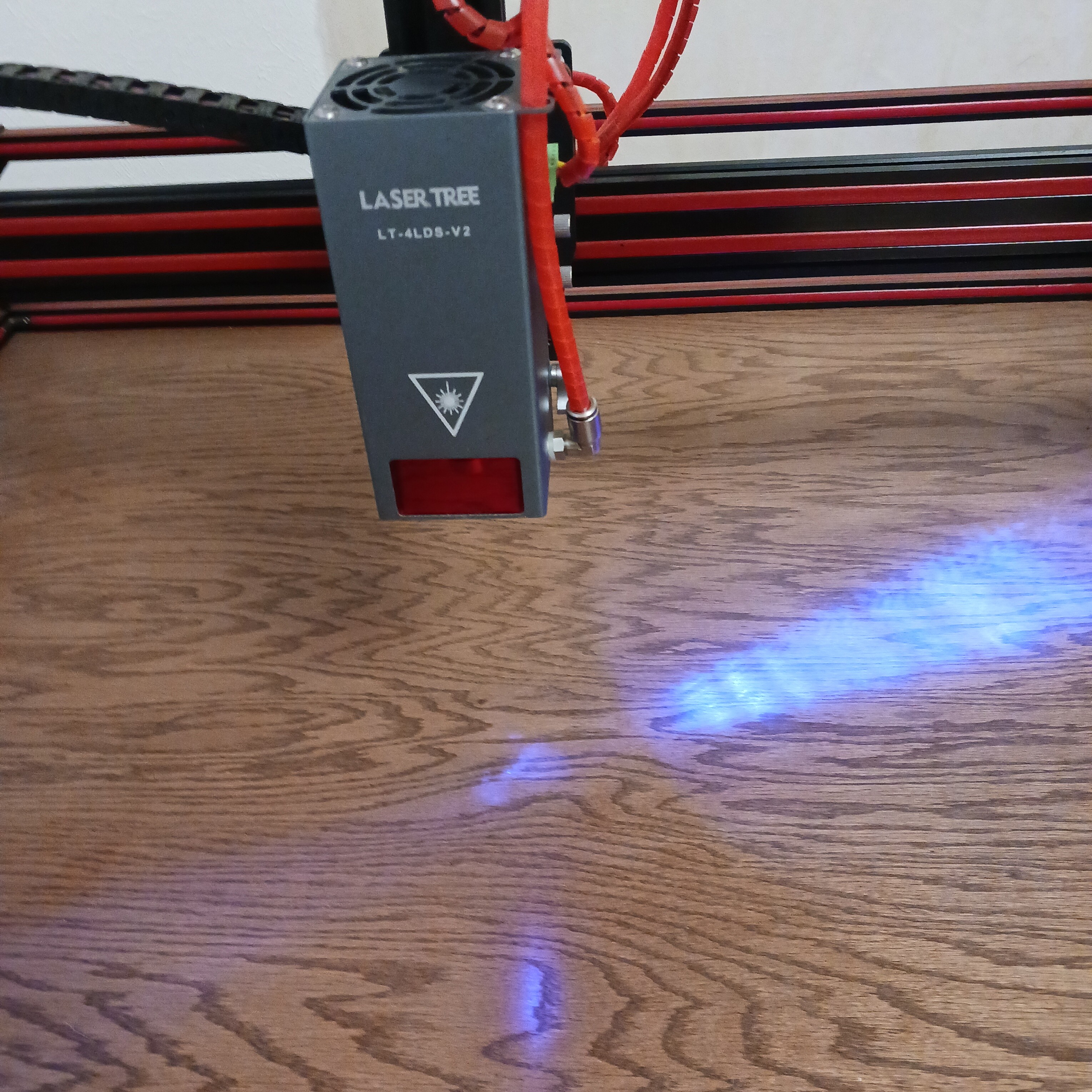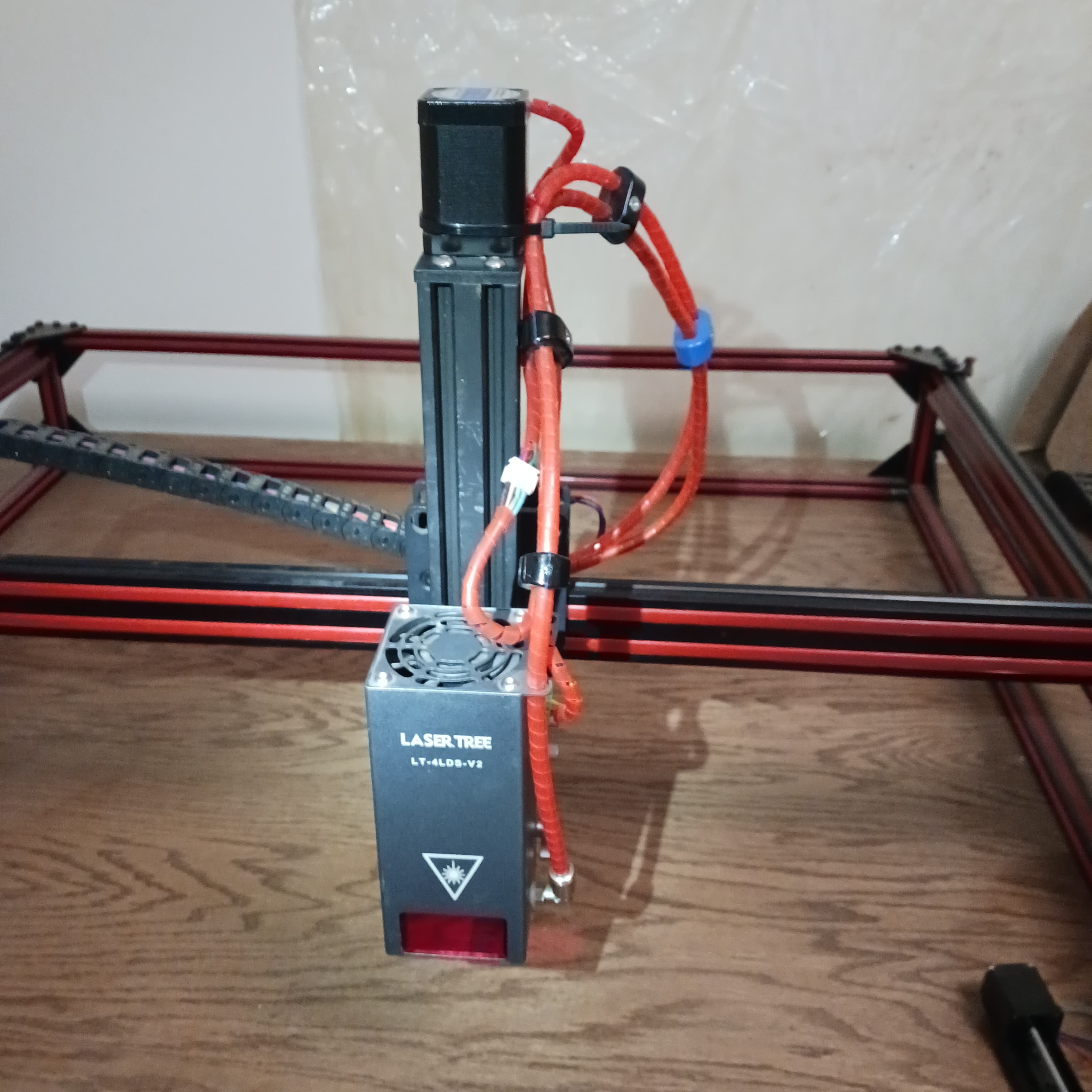 power and air all hooked up and carefully set the laser down on the bed standing upright. A few days later it got “tipped” over, by me and my clumsy hands, and now this. I’m contacting Laser Tree now to try to find a way to fix this thing or maybe get lucky and get a replacement on it. I don’t think a replacement is going to work seeing how I bought it in Sept. of 23. We will see. So until I can get this problem fixed, I’m shut down completely. I’ll give you an update after I here back from Laser Tree. So for now I’m throwing a blanket over it and I done with it. One thing I forgot to say is that the air nozzle is mounted to the laser so where is the light shinning through? Well I’ll find out after I hear back from L.T.
