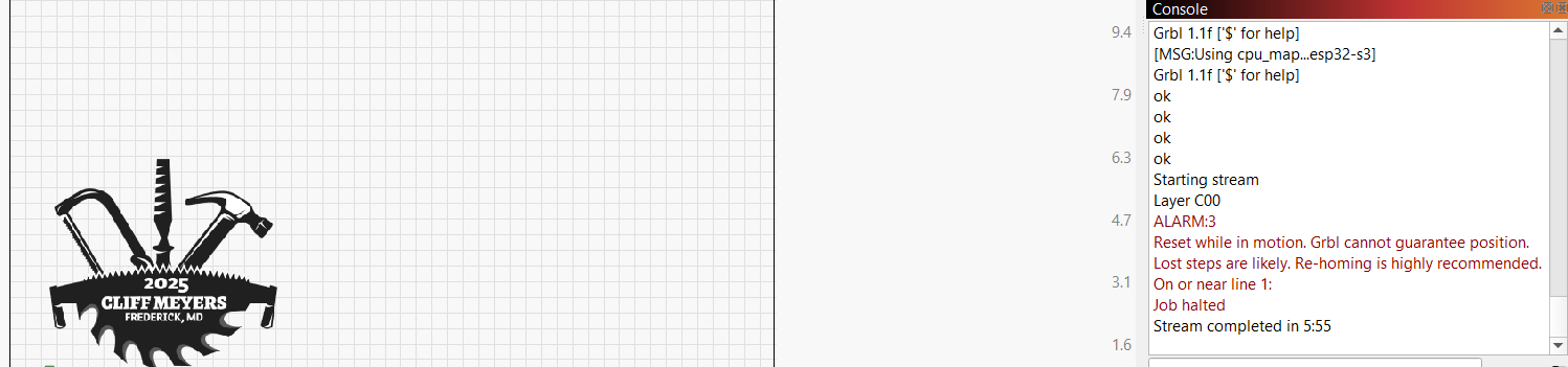 We often see this when overscan runs out of bounds. Generally this is most likely when engraving images or Filling closed shapes.