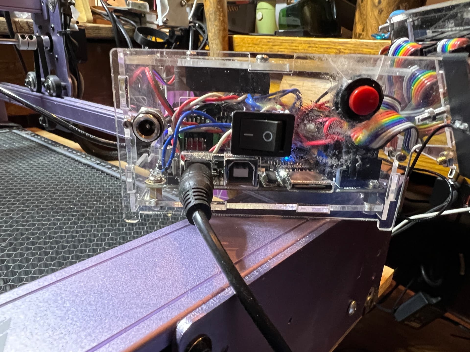 Here is a finished a dlc 32 conversion and got a new enclosure assembly. works pretty good had to add a hole for the reset button, a hole for the power switch, a hole for the air assist pump. the material is a little thin so you have to be a little careful. it does hold everything well and the fan is a nice touch. the ports are all quite easy to get to.