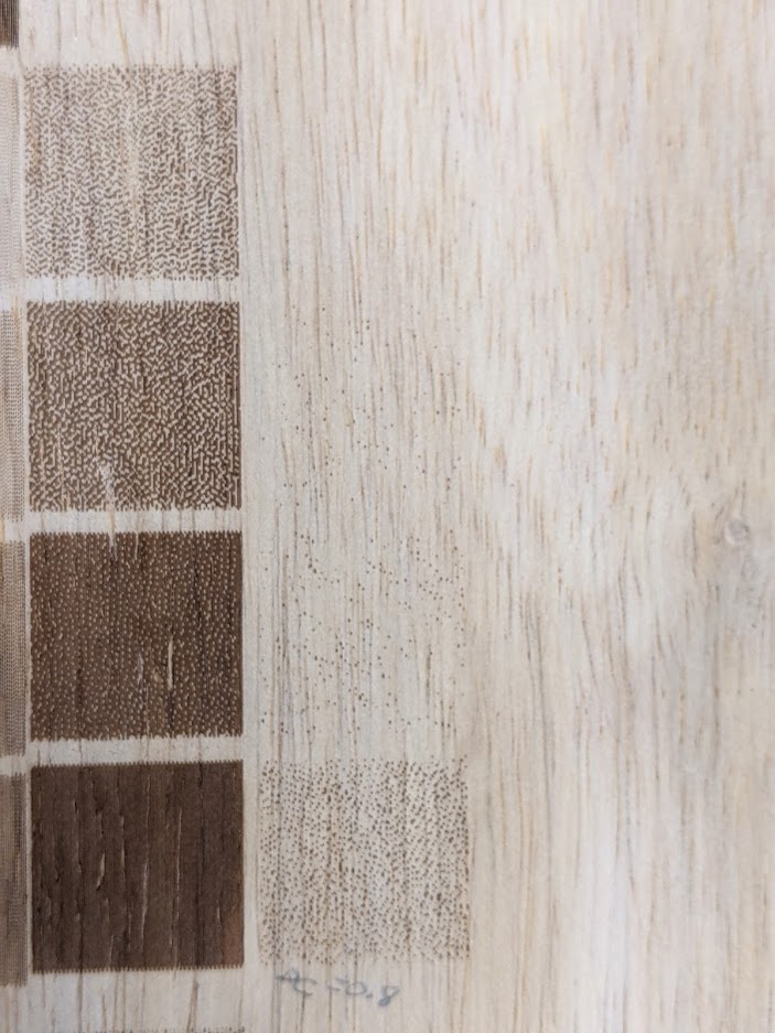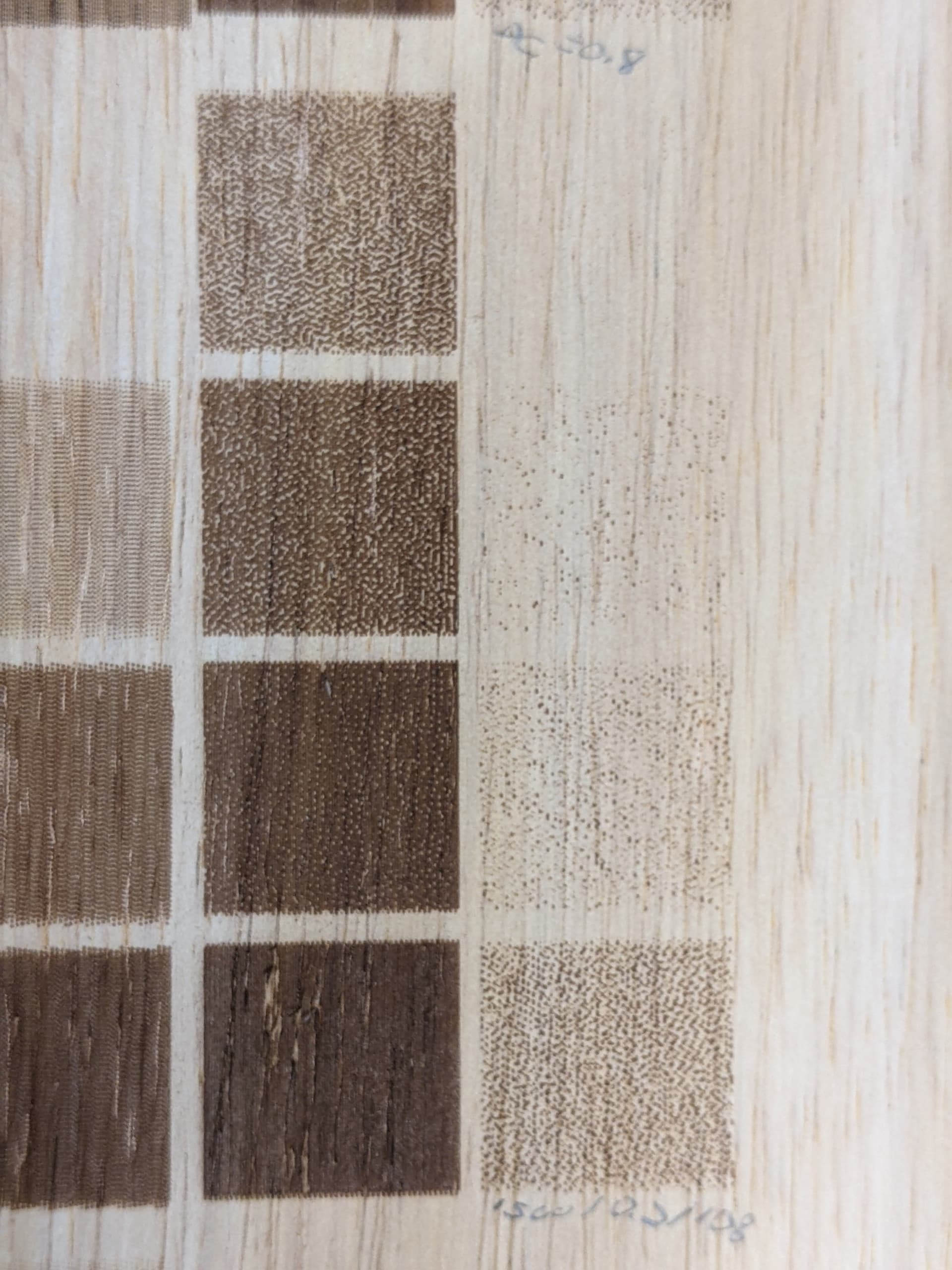 A set of simple 00,1f,3f,5f,7f,9f,bf,df,ff squares. 00 is of course unburnt and can be anywhere. The squares must be large enough to encompass enough dithering points to average. On wood, the squares must be large enough to cover an average of dark and light grain areas.