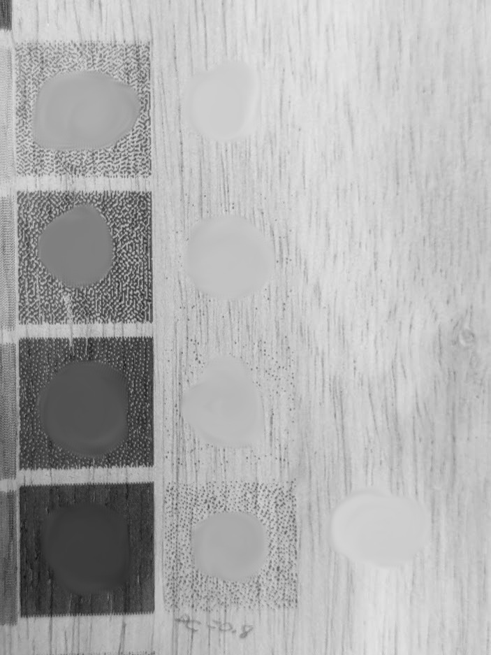 Use Color Picker to get the numeric shade after each burn. We don’t actually need or care that low isn’t 00 and high isn’t ff. We just take the 00 and ff endpoints, find what we actually got, and then look for linearity between them. This is taken as one photo, so lighting and the camera’s auto settings won’t change anything because it affects all the samples. Actually two entirely different settings being tested here (left and right), I’m using the one on the left. I did turn off auto HDR in my phone camera settings, not sure if necessary but seems like a good idea to not use HDR.