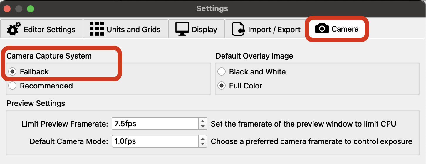 We’ve had reports, that the “Fallback” Camera Capture System needs to be used with the camera of the Falcon 2 Pro: