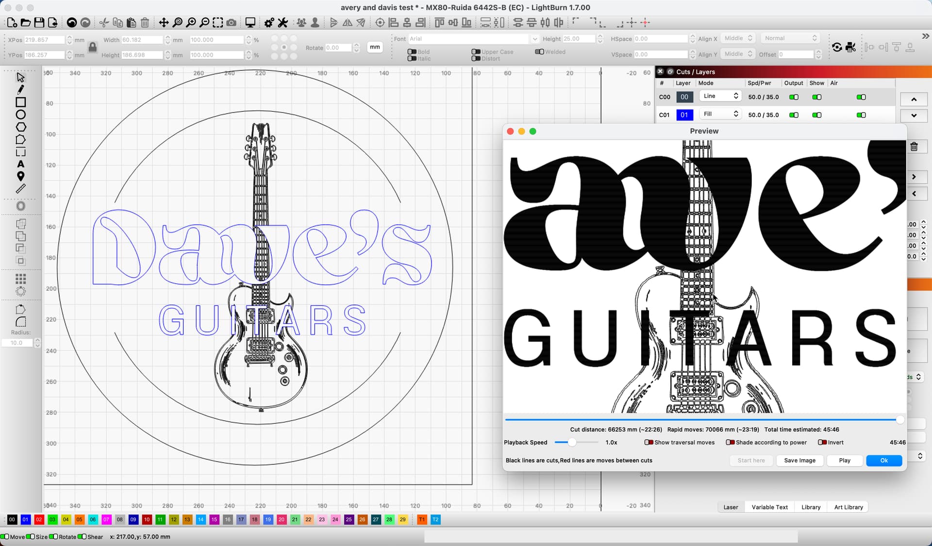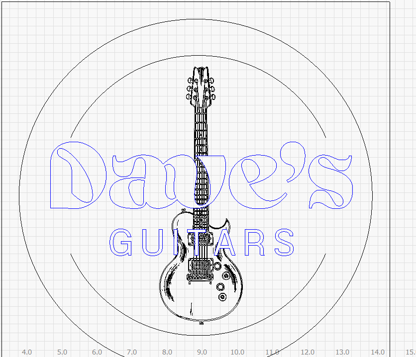 I used ‘Cut Shapes’ to produce the following. Grouped all the text, and made the guitar a group as well. Used the outermost guitar shape as the cutter.