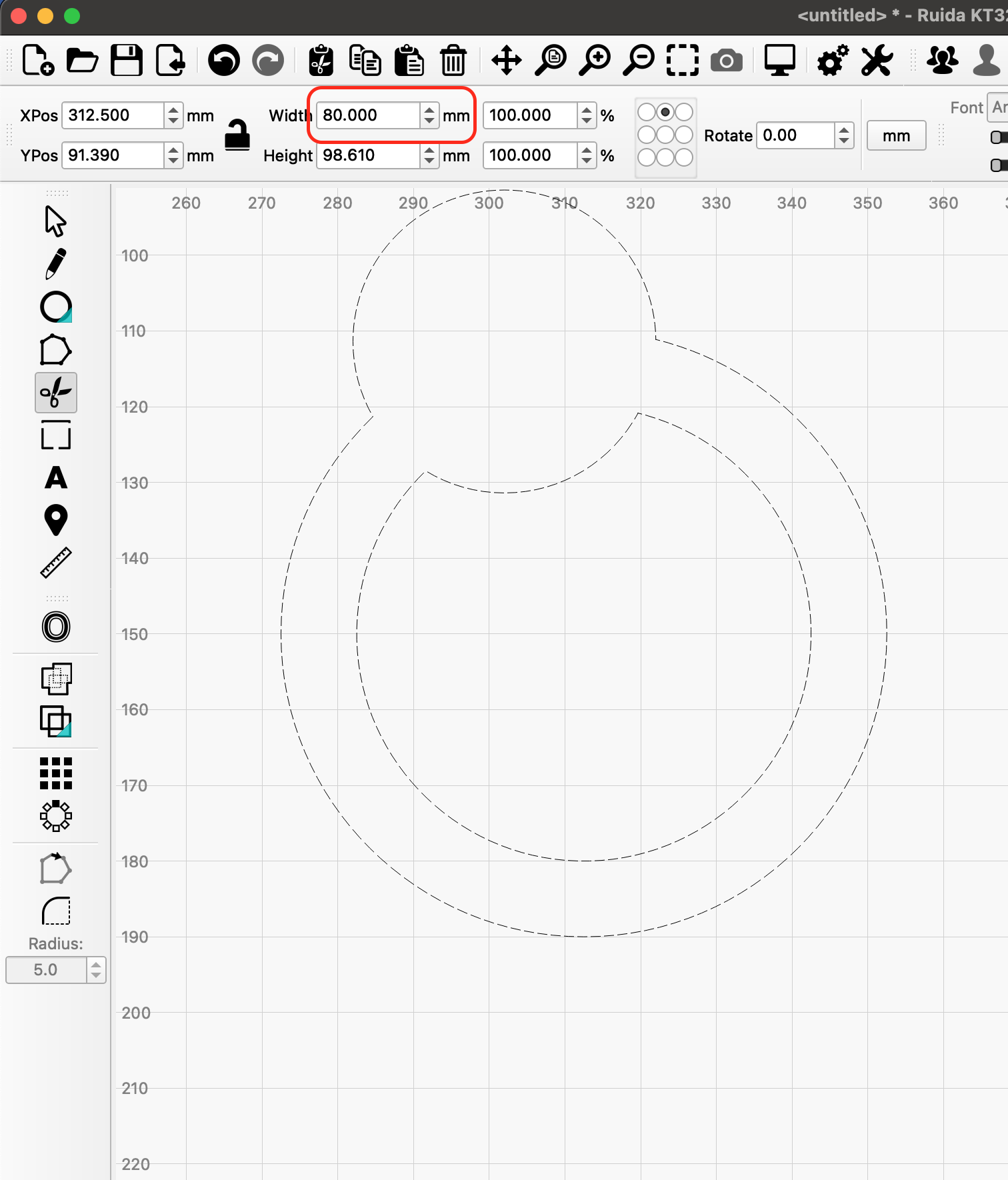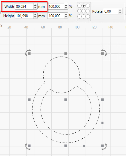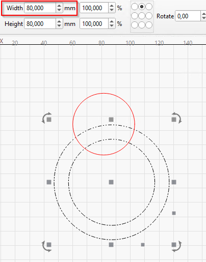 Make 2 circles and group them (black), add another circle (red). Width is 80mm