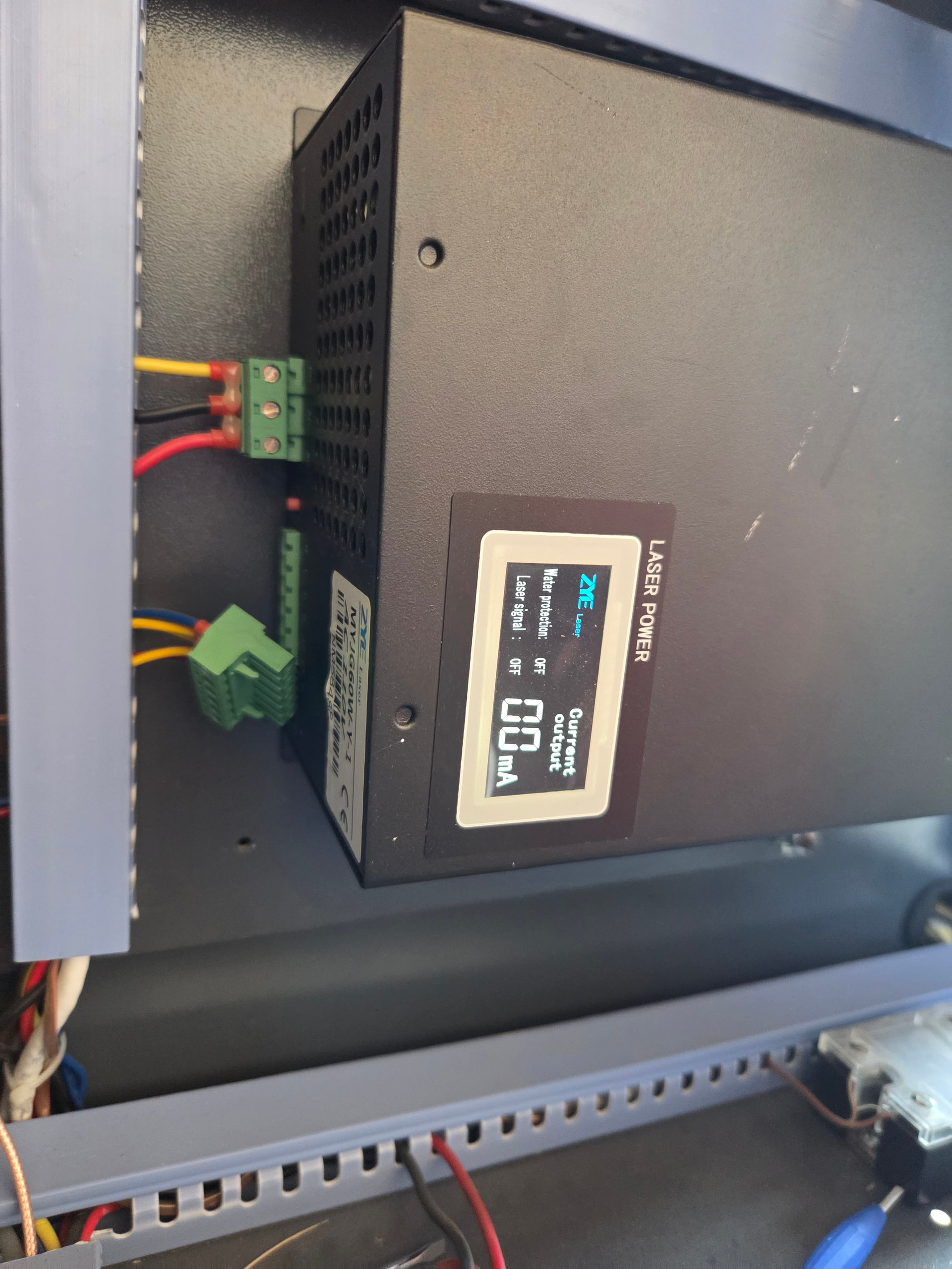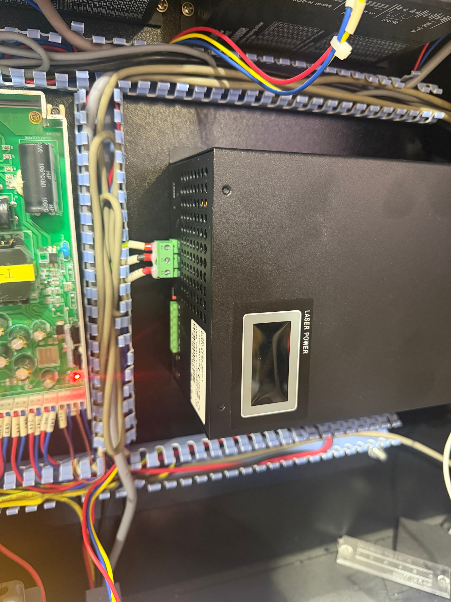 I looked at the LPS and the screen would not come on. I unplugged the controller connector and hit the test button and it would not fire. I checked voltage and was getting 120V at the LPS. I checked all of my interlocks (e-stop, lid, and water) and everything looked good.