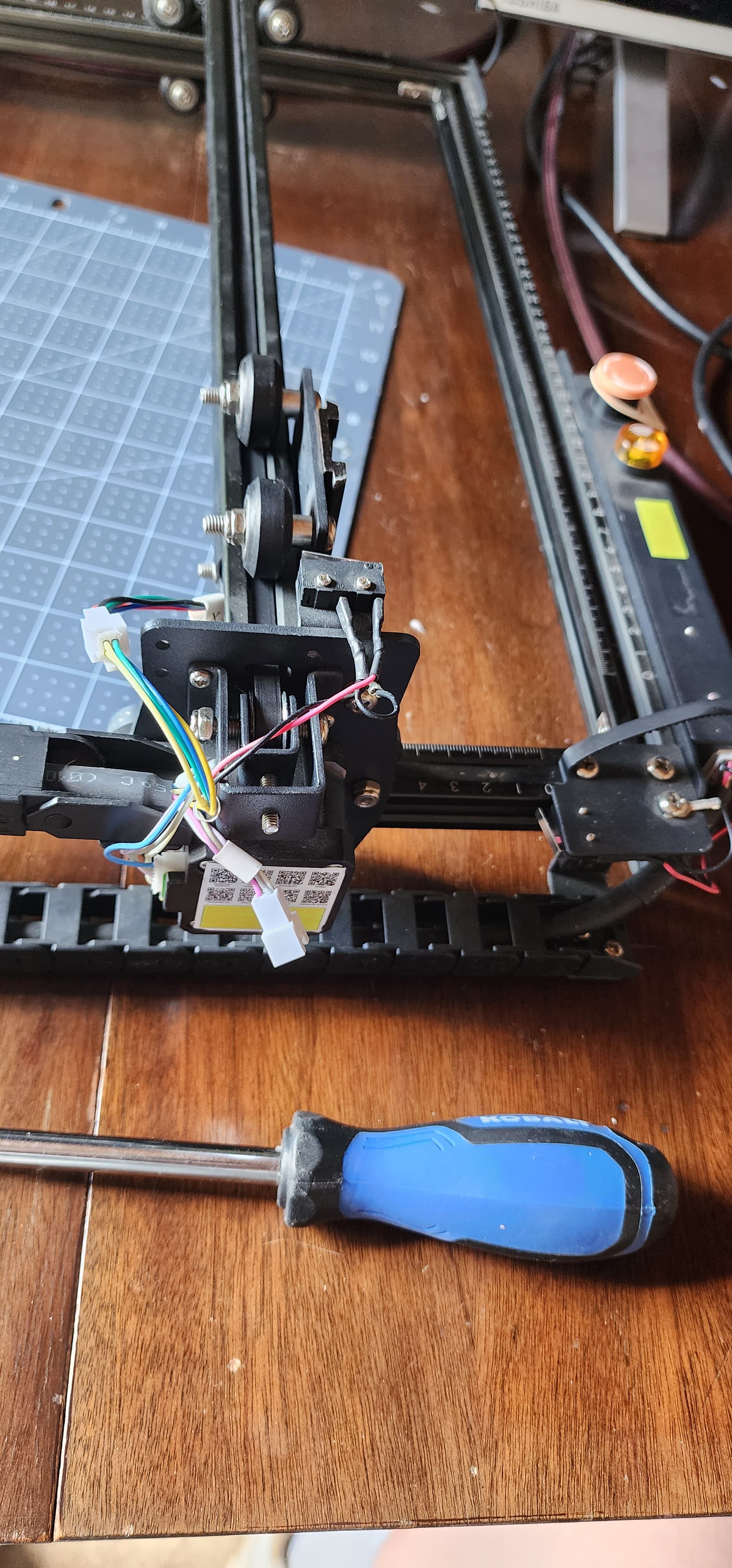 I’m not sure if it’s the belt suddenly or what. It’s like it’s binding up on something when it burns, and moves the burn sometimes 2 inches because it skips. And on the left side, the metal wheel is grinding against something but I have no idea what. But I think that might be the problem. It just started. The belt tension is underneath the carriage correct?