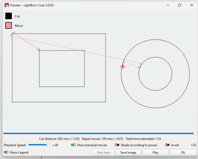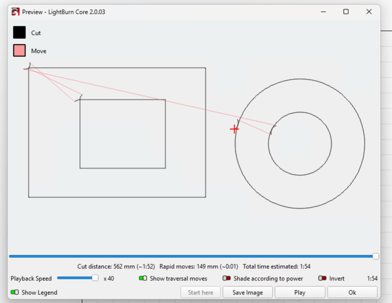 It seems that an extra 90 degrees needs to be added to lead-in and lead-out for rectangles. The inner cut needs to start toward the center of the innermost rectangle and instead lead in and lead out always starts on the outside of the inner rectangle.