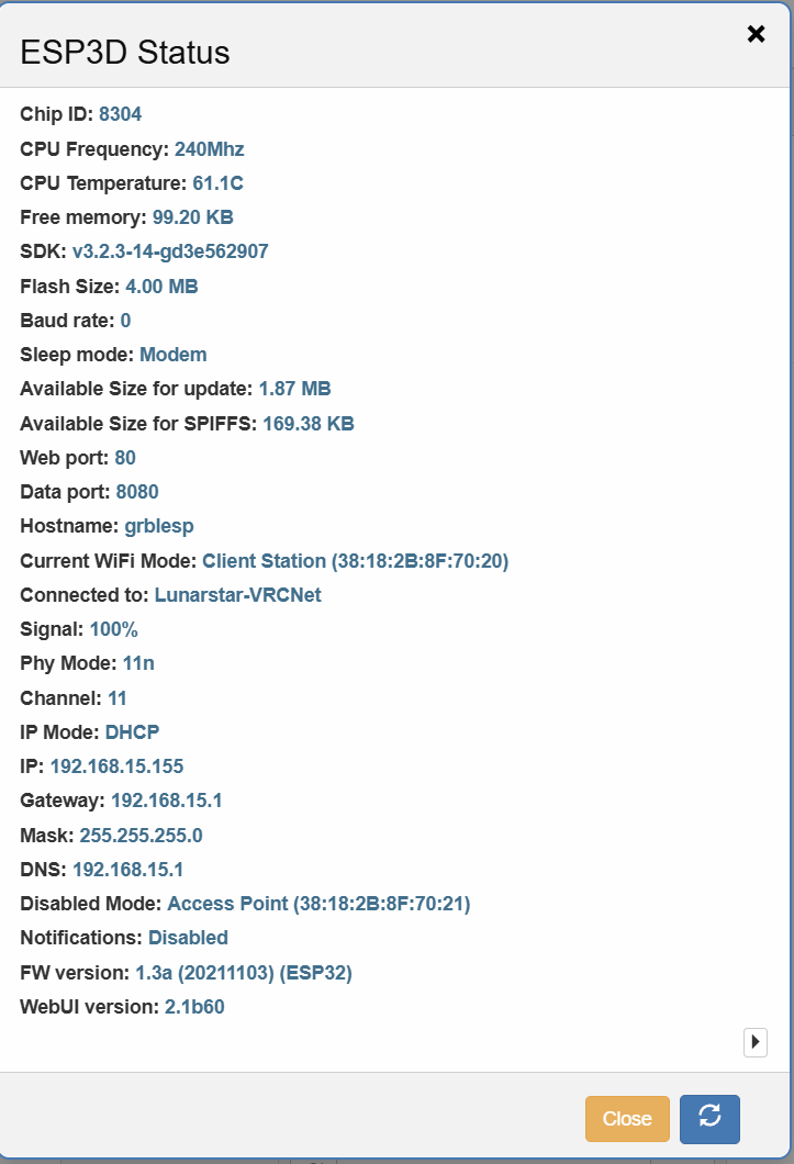 Also another question while I’m here messing with Lasers, I’m having an issue that my printer currently runs over WiFi using Telnet(Need to put it outside so it don’t smell).