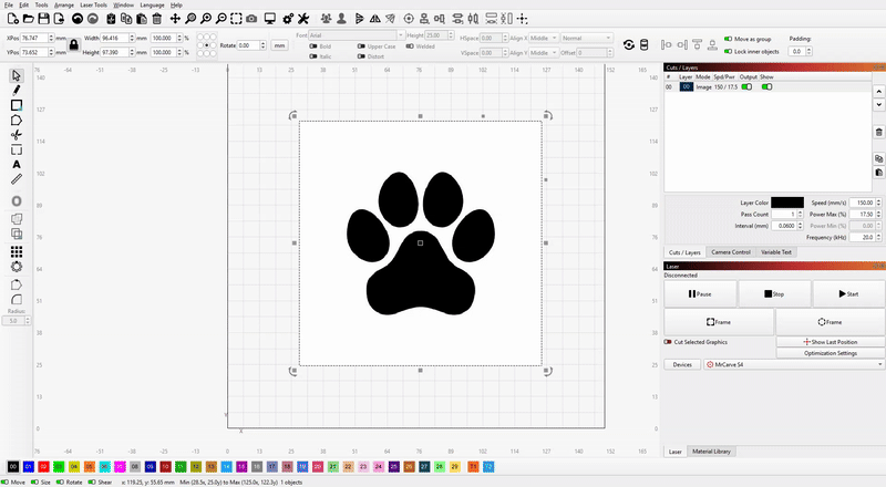 Ya I have done image trace already, which seems to work fine, but if it’s a complex shape, rubber band frame only seems to trace the smallest path, not the exact shape, so far the only solution I found is to just run it with 1% power so I can get the exact path.