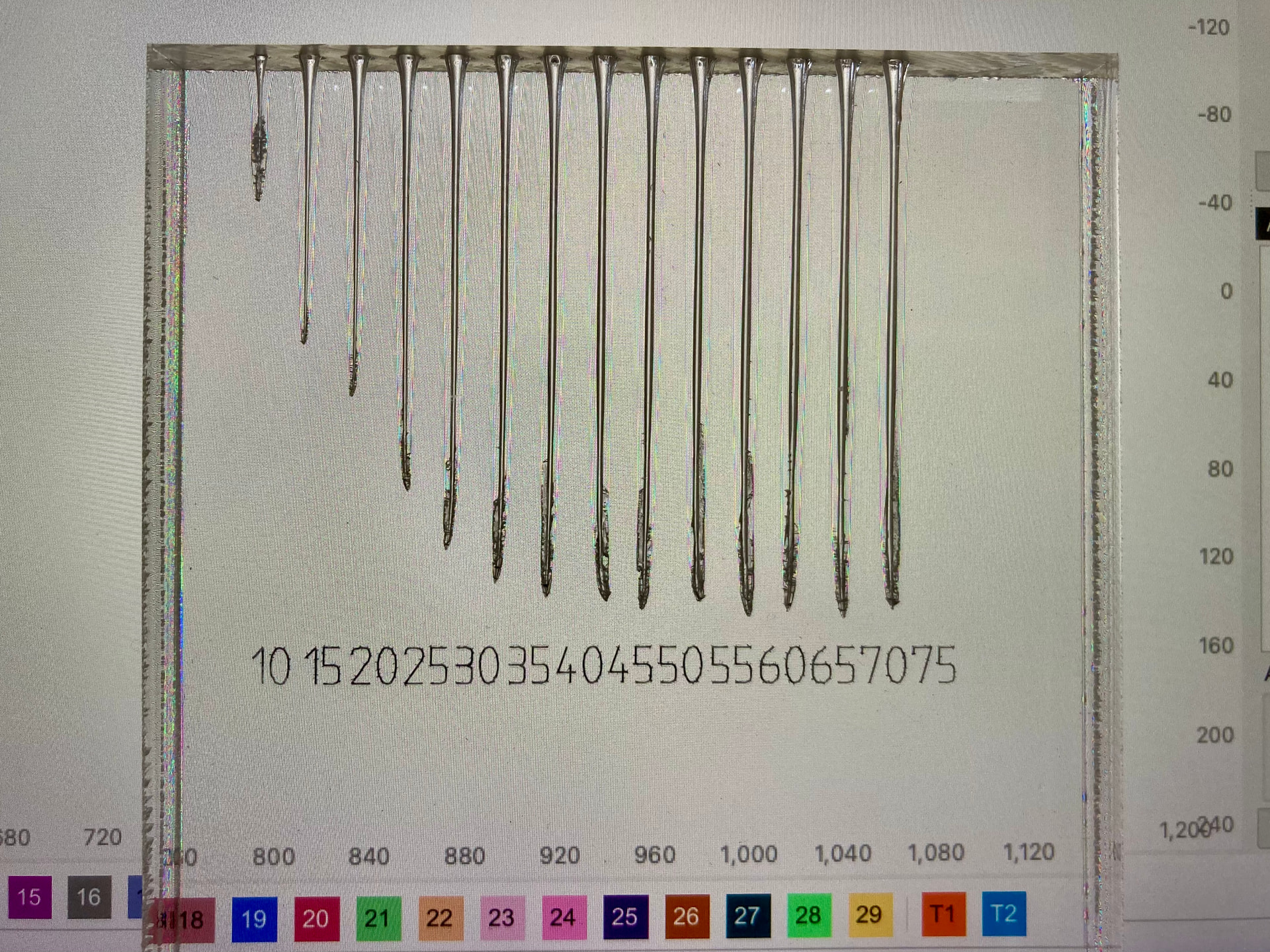 This is my power supply, a ZYE laser myjg100W-Y. 100W in the description but the specs say it is suitable for 80-120W. I found the manual online, it says nothing about adjusting the power. There’s a little hole next to the ‘laser’ label at front left. Changing the phrasing of my Google search yielded an AI-generated result that indicated that on some models of this power supply there is indeed a hole labelled ‘laser’ that is the adjustment point. I will give it a go. The goal is to have long life from the tube but to also have a linear output from different power settings in Lightburn for accurate cutting and etching / engraving.