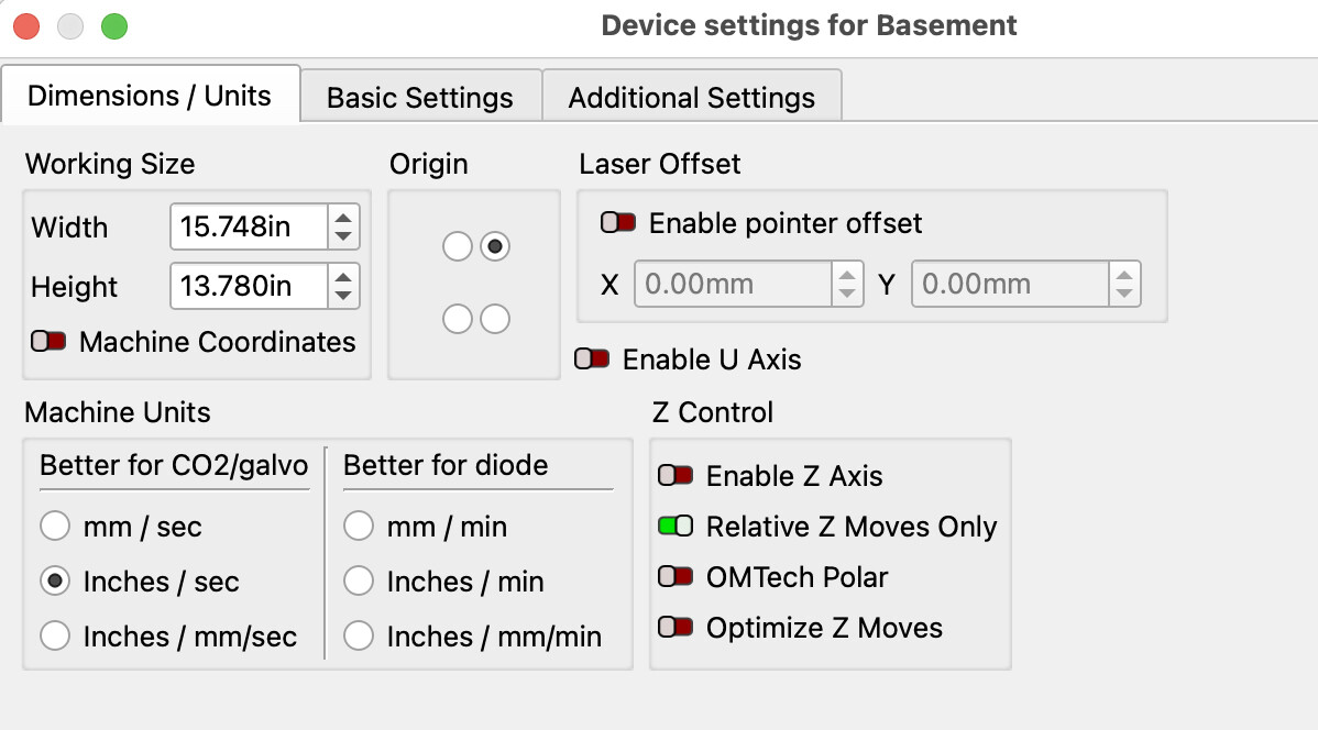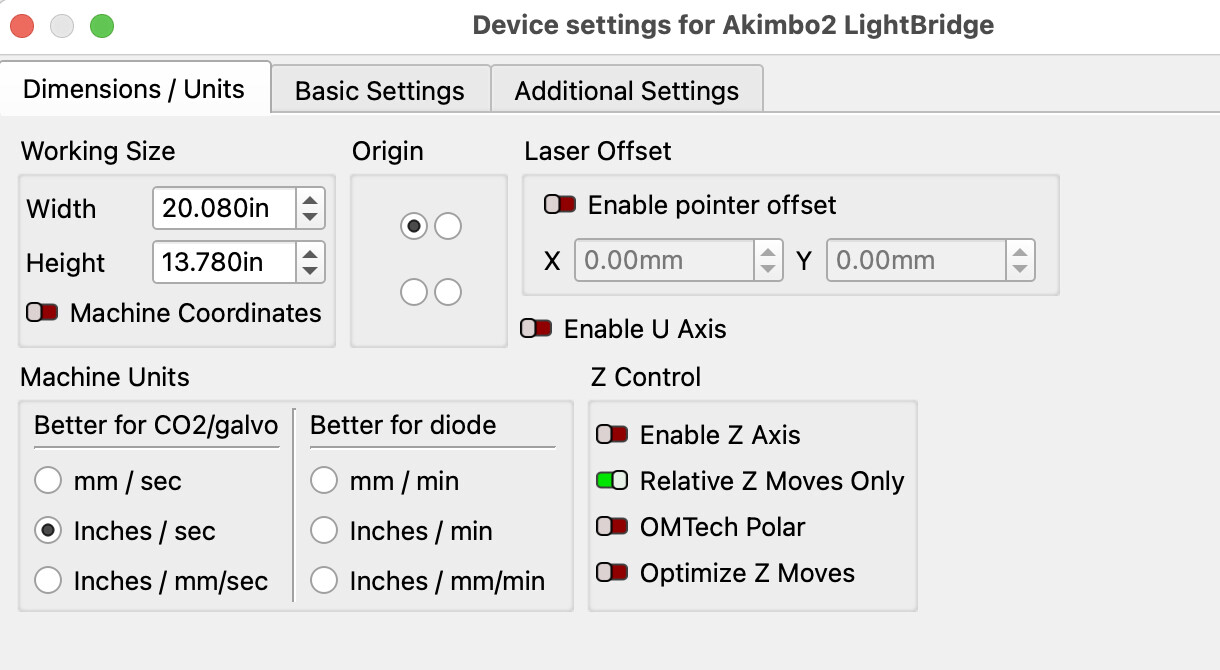 (I’m jogging with the controls on the BOSS, not in Lightburn… not sure if that matters. I tried it with the software jog the second time, and also got rid of the bounding box, but no luck.)