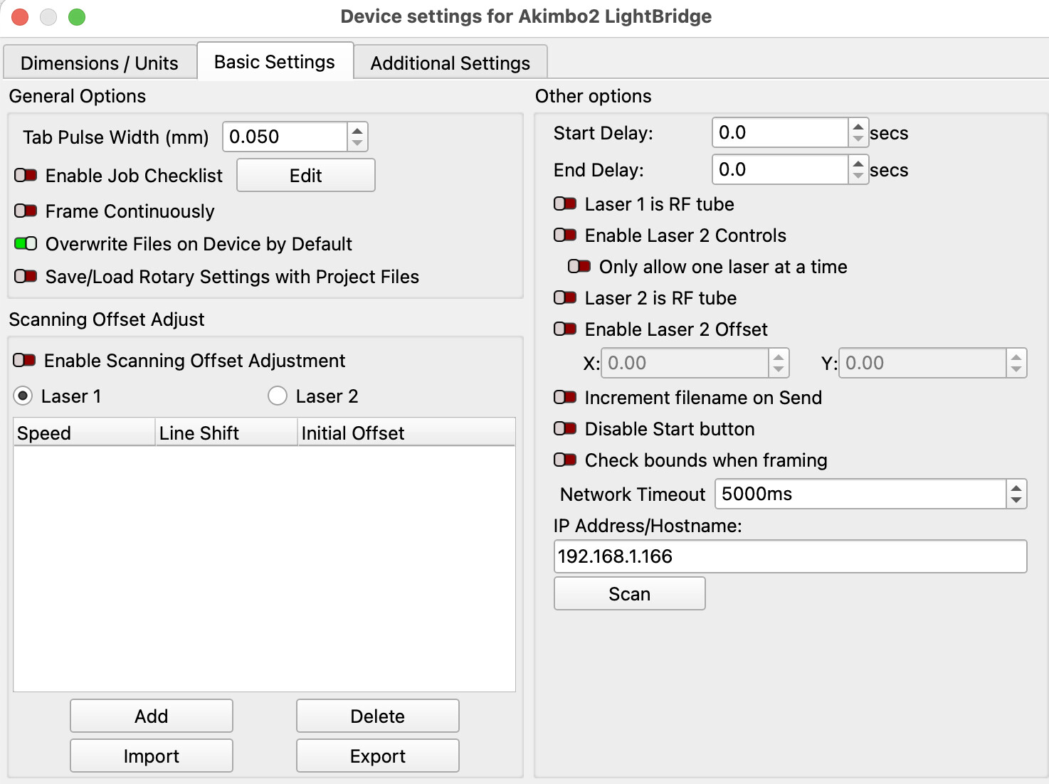 I use the lightburn bridge to send files to my bosslaser. When I switch from the default usb connection to the lightburn bridge, I need to mirror whatever I’m cutting (so words come out backwards, etc.) I’m used to that.