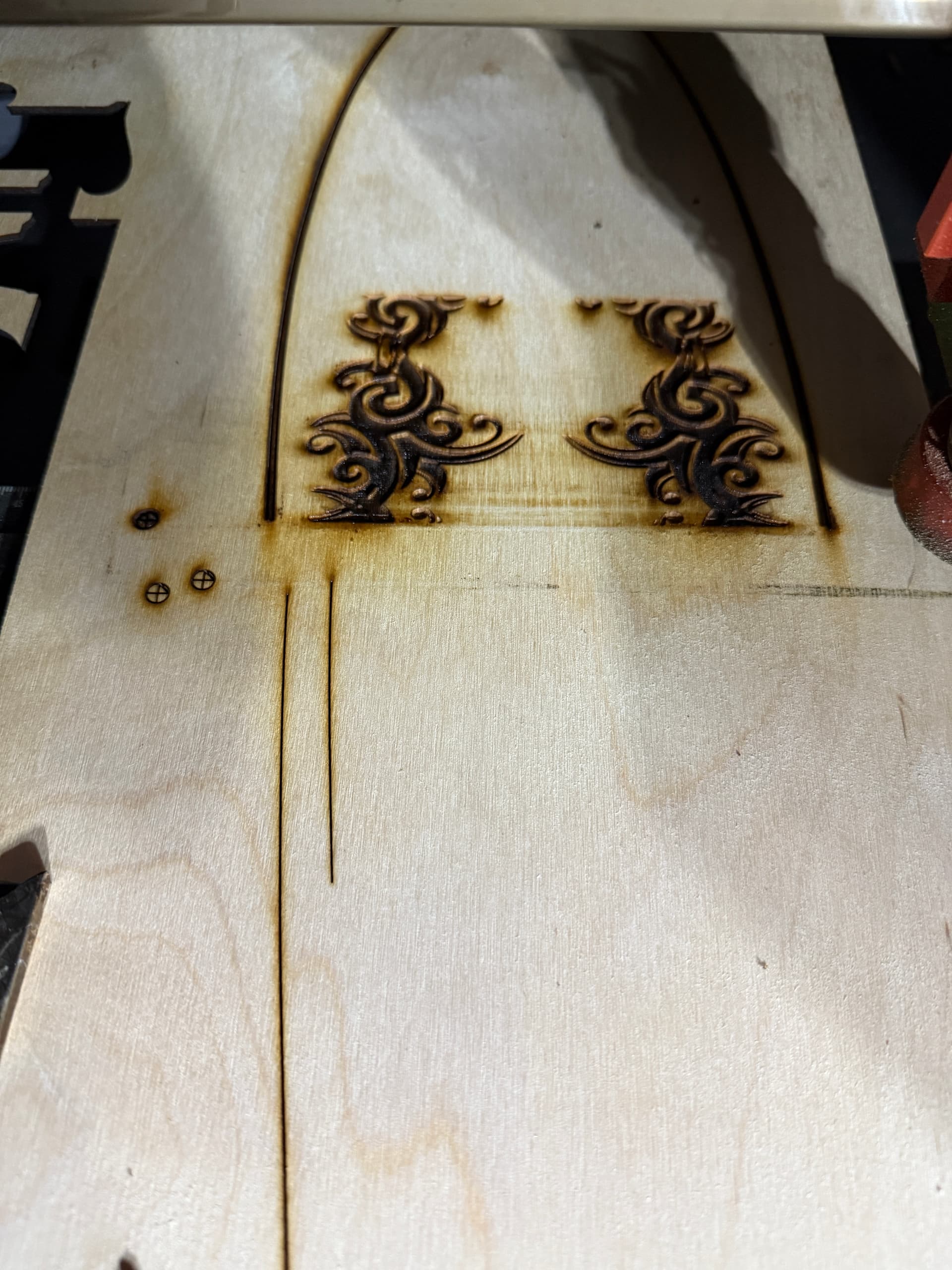 Okay, so I print the first file, the ‘bottom’ of the paddle, knowing that I’m going to push the wood into the printer to tile the next section.