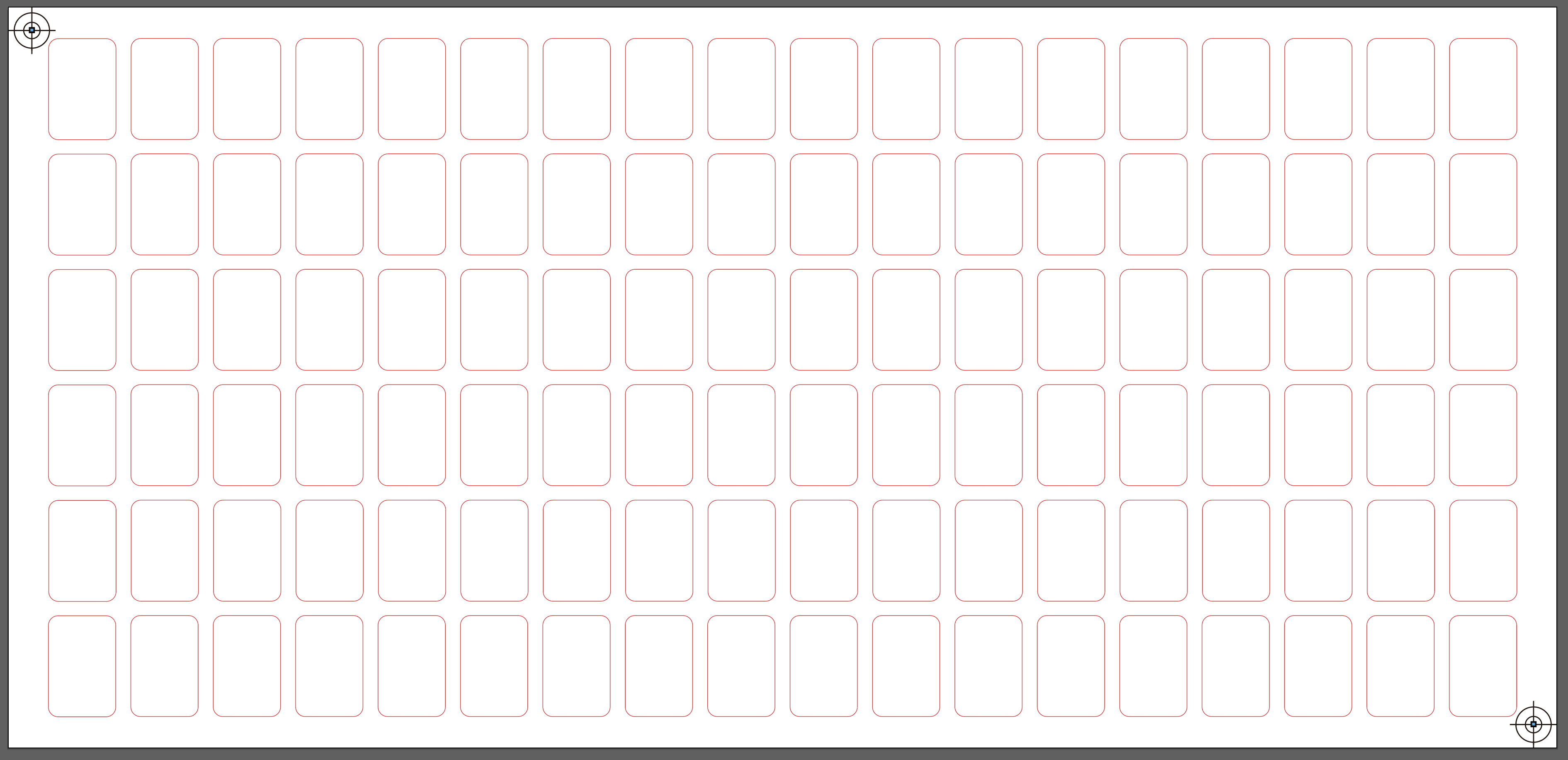 I am printing on both sides of the same acrylic sheet, using a single Illustrator document where the artwork for both sides is positioned identically. The alignment targets and red cut outlines are exactly the same on both sides.