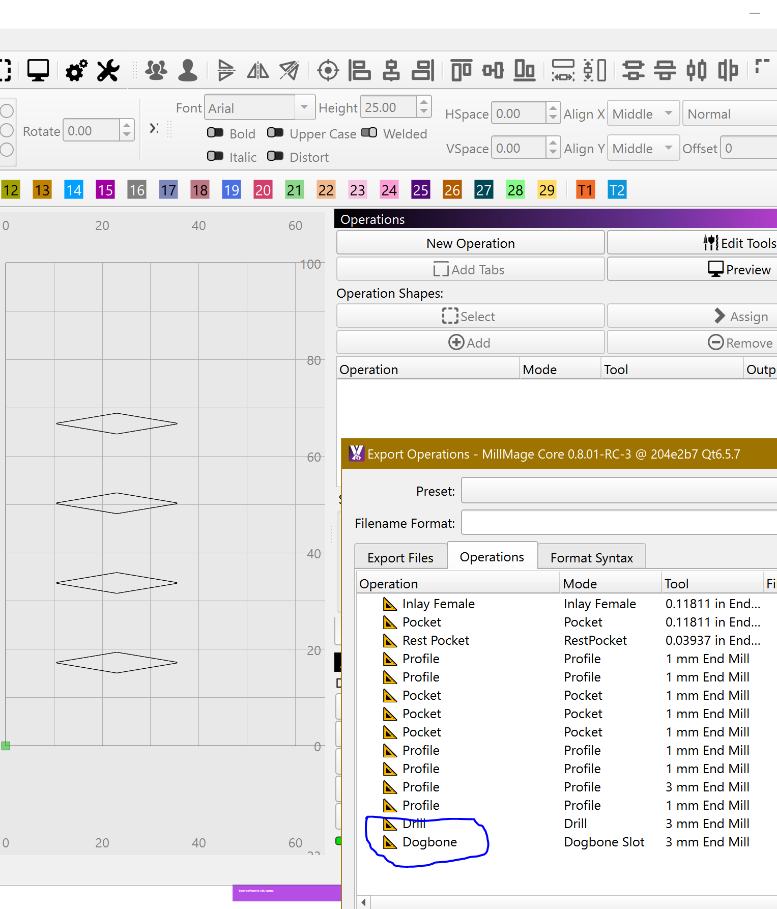 just downloaded the new ver MillMage Core 0.8.01-RC-3 @ 204e2b7 Qt6.5.7 and could not create a new operation, tried profile and pocket