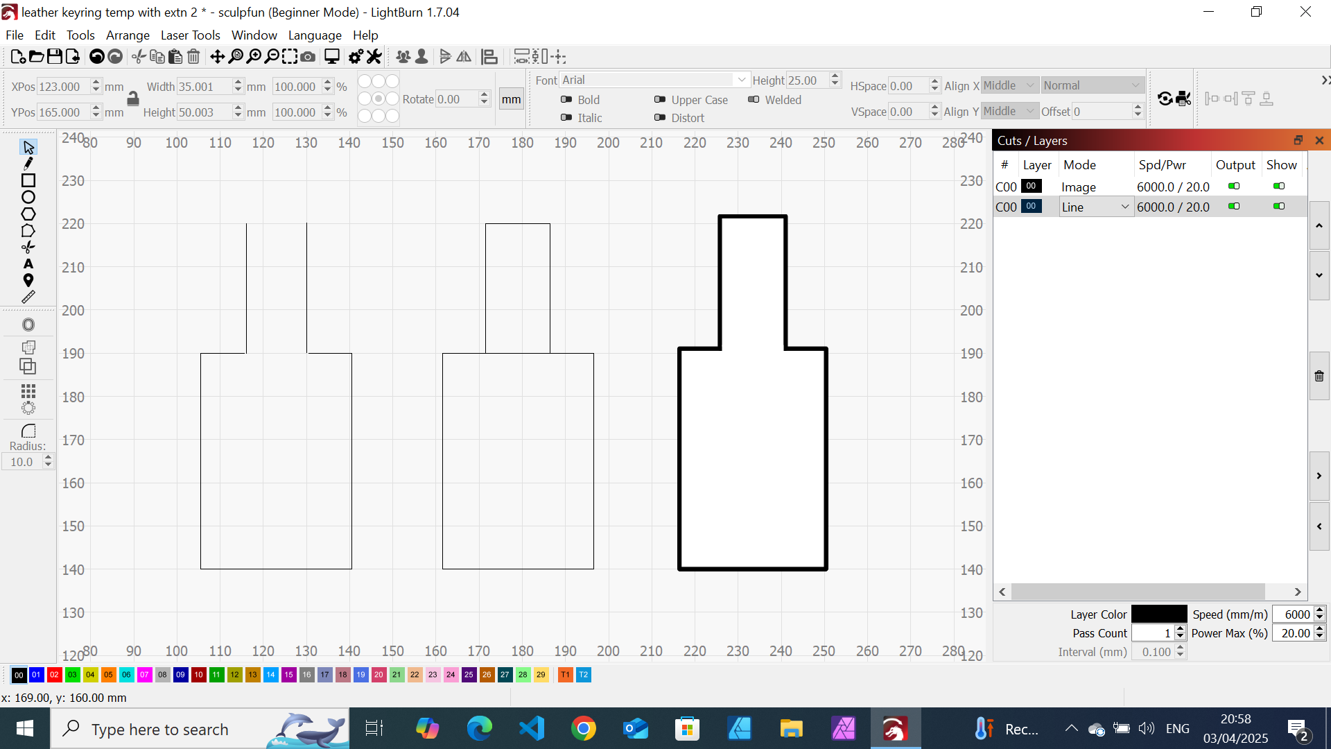 I drew a keyfob shape in affinity and imported it into lightburn. first as an svg file then png. My problem is that I am unable to change the file from line to image. It takes more time than I can drink a coffee to cut! If the screen print uploads the affinity (imported) keyfob is to the right.