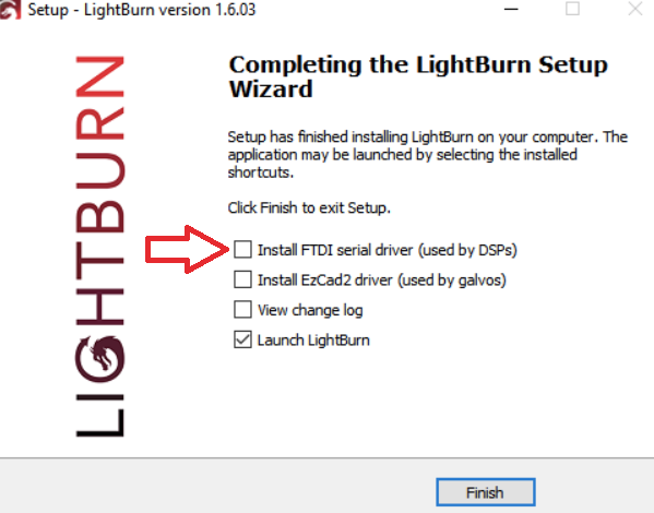 You may also need to install the FTDI serial driver during the LightBurn installation.