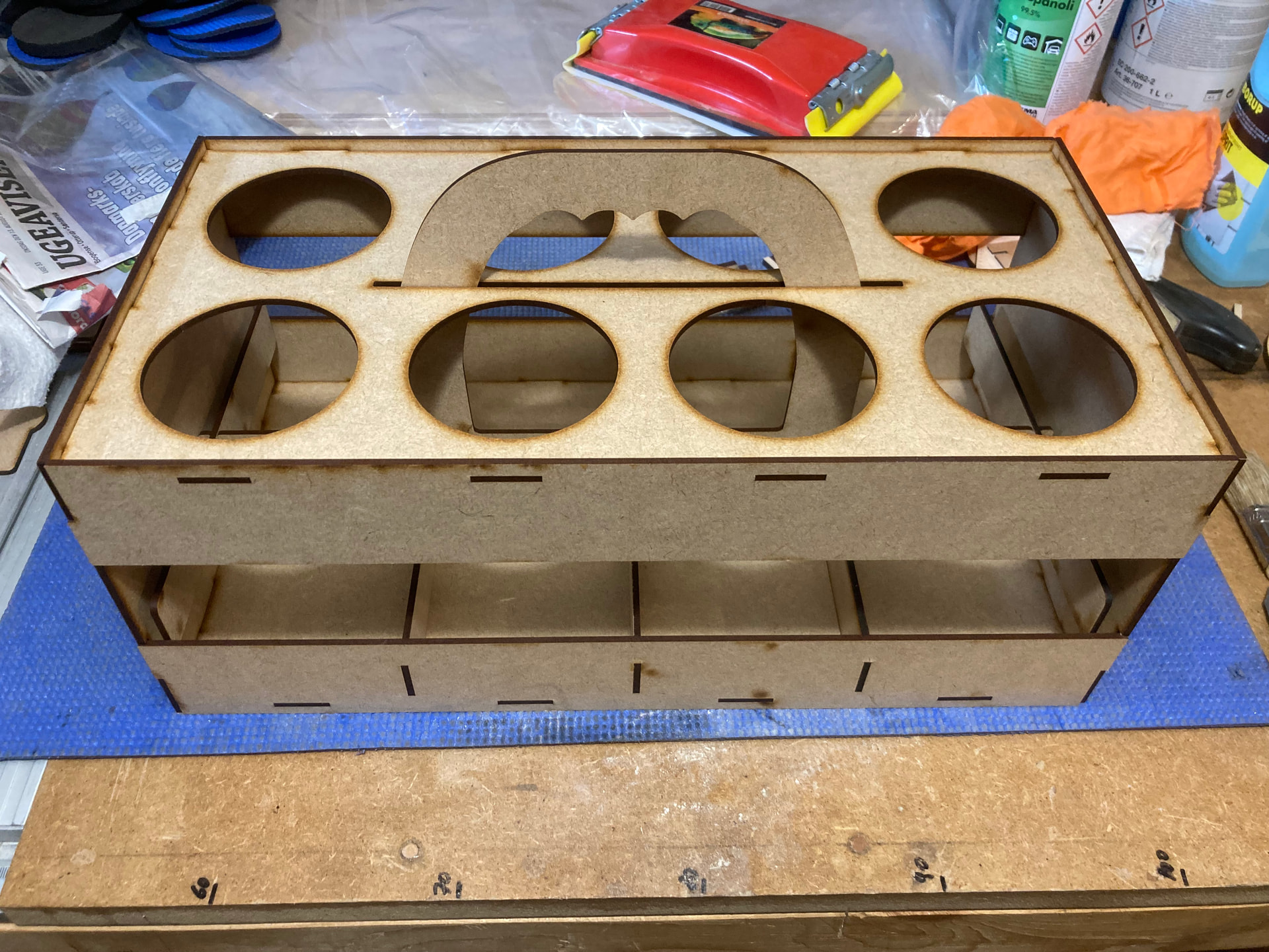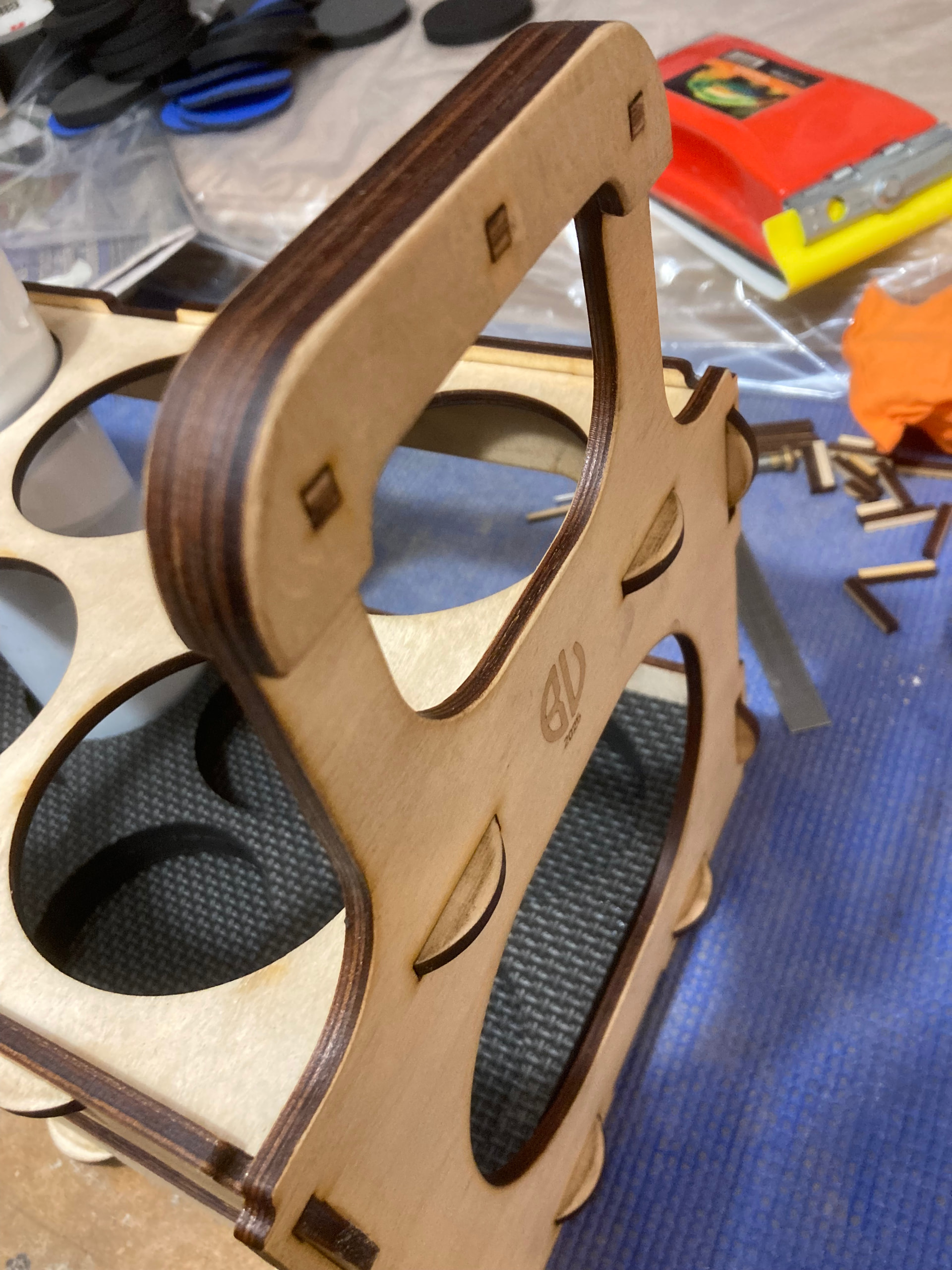 For the task I found some sheets of 5mm BB plywood left over from another task. As always, I drew/designed everything in LightBurn, and only made 2 mistakes this time, which could be fixed by using the camera and rearranging the items in the laser machine again for “transformation”