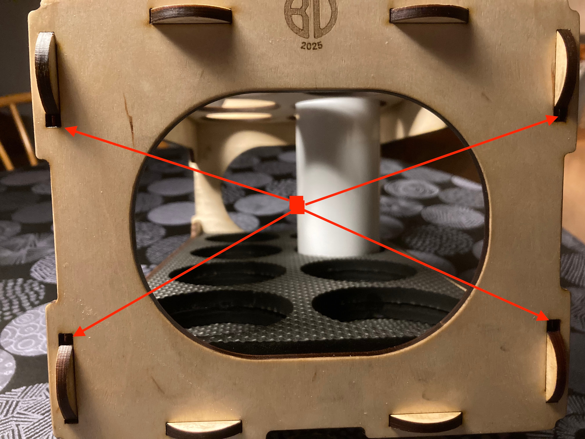For some reason I have misplaced 4 slots on each side by 5mm. Since I don’t want to use more material on this prototype, I used the camera system in LighBurn to correct these slots. I draw a 4x4mm square and place it where the slots should be increased by 5mm.