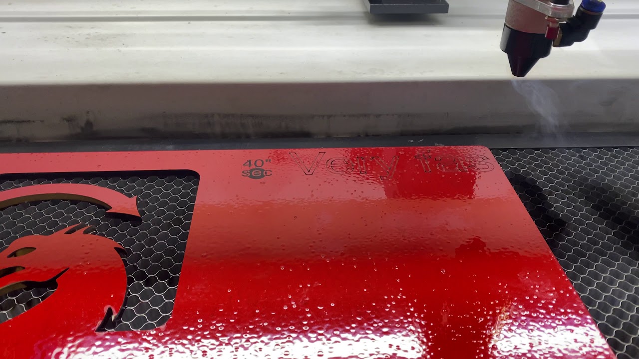 If I had your machine, I would concentrate of belts and pullies at this point. Something like 15-25mm 2m GT2 profiles with resonance dampers. I can see those HTD belts you’re running vibrating like a guitar string. Now for the paint removing stuff you’re doing in the videos, this sort thing probably isn’t an issue that is as noticeable. But scale your work on down to 1/3rd or less the size of what you have on that 40" raster engrave on the red plate and run this again on acrylic that you also cut out with rounded corners. The rounded corners will likely show belt resonance marks.