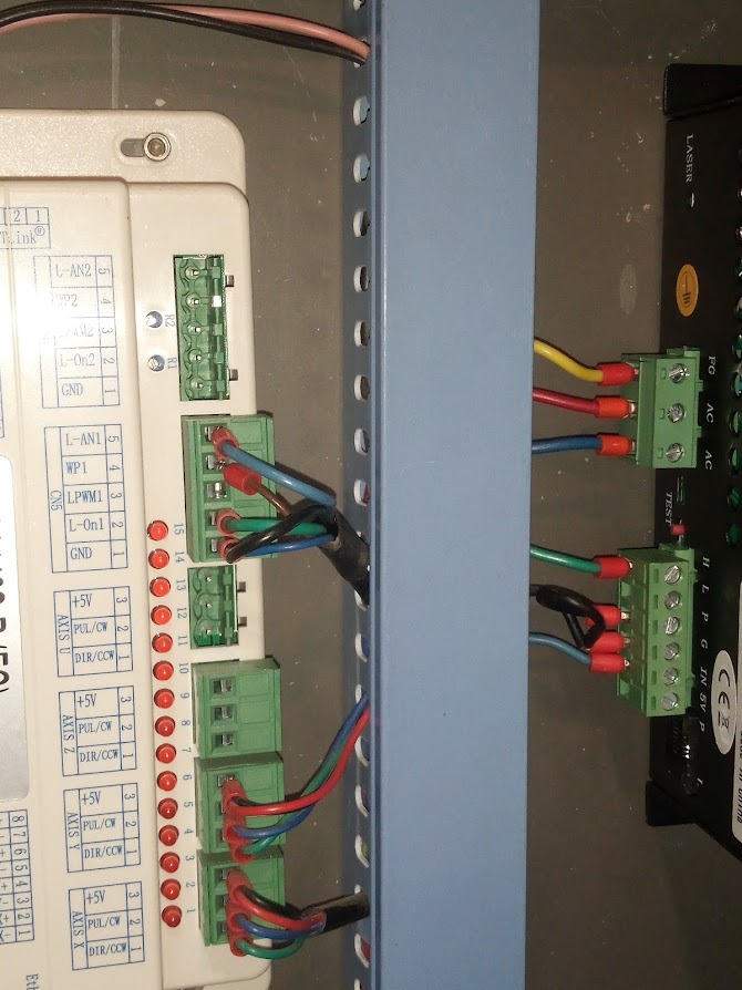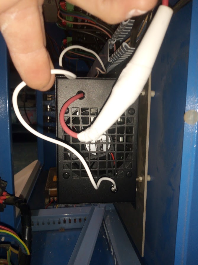 Before proceeding: if the white lead is the cathode lead for the laser tube, it must be connected.